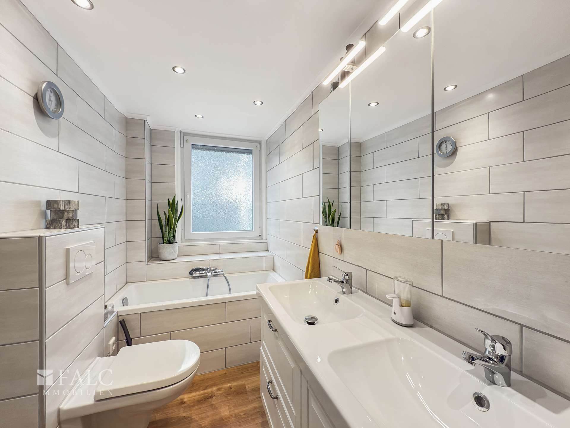 Das Tageslichtbad wurde 2020 modernisiert und präsentiert sich hell, gepflegt und zeitgemäß. Badewanne und Dusche ergänzen sich zu einem komfortablen Badezimmer. Ein separates Gäste-WC sorgt für zusätzlichen Komfort.