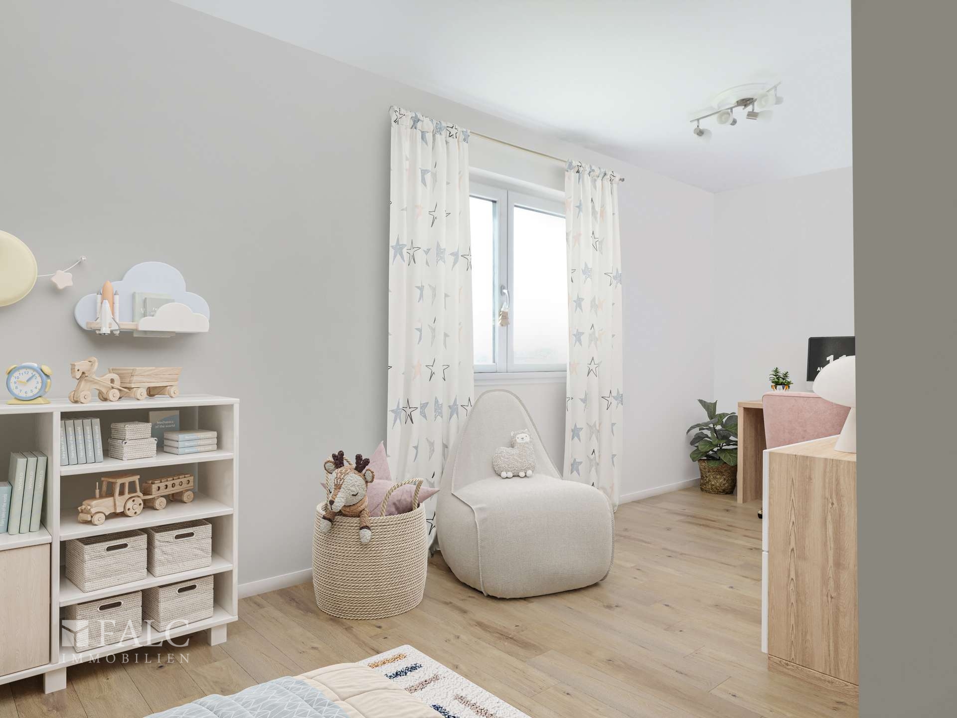 Im Obergeschoss befinden sich zwei weitere Schlafzimmer, die sich ideal als Kinderzimmer eignen. Beide Räume sind hell und freundlich gestaltet und bieten ausreichend Platz für Spiel und Erholung. Ein weiteres Badezimmer sorgt für zusätzlichen Komfort.