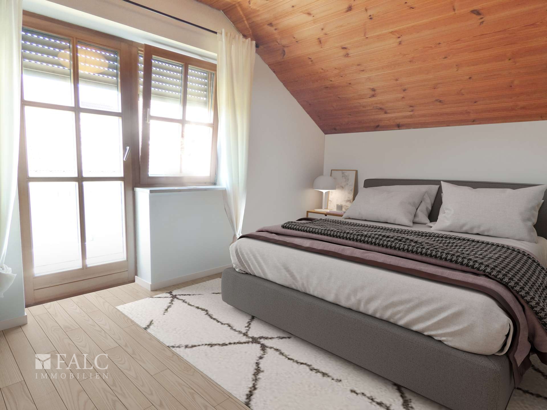 Im Obergeschoss befinden sich drei Schlafzimmer, die individuell gestaltet werden können. Das Hauptschlafzimmer bietet viel Platz und Komfort. Ein weiteres Zimmer eignet sich hervorragend als Kinderzimmer oder Büro. Die Ankleide bietet zusätzlichen Stauraum und sorgt für Ordnung.