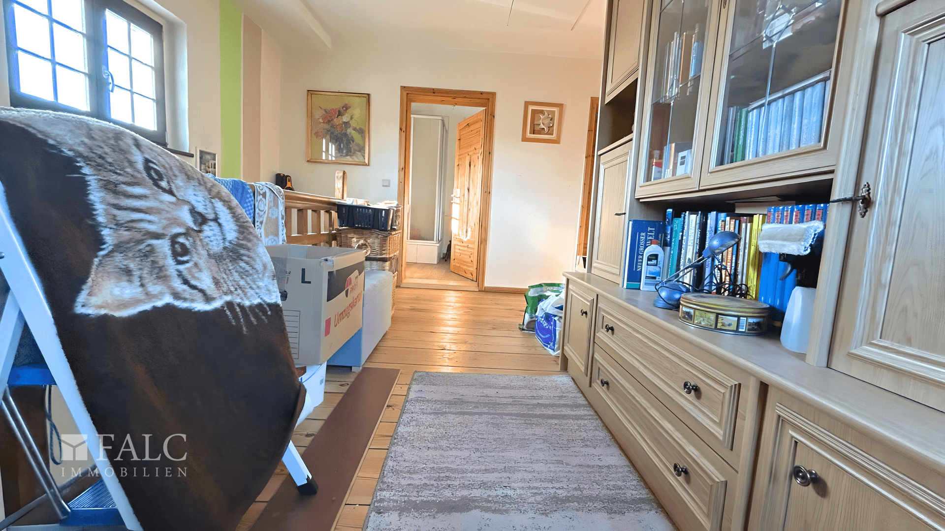 Vom zentralen Flur des Obergeschosses gelangen Sie auf den Balkon, der zu gemütlichen Abendstunden einlädt.