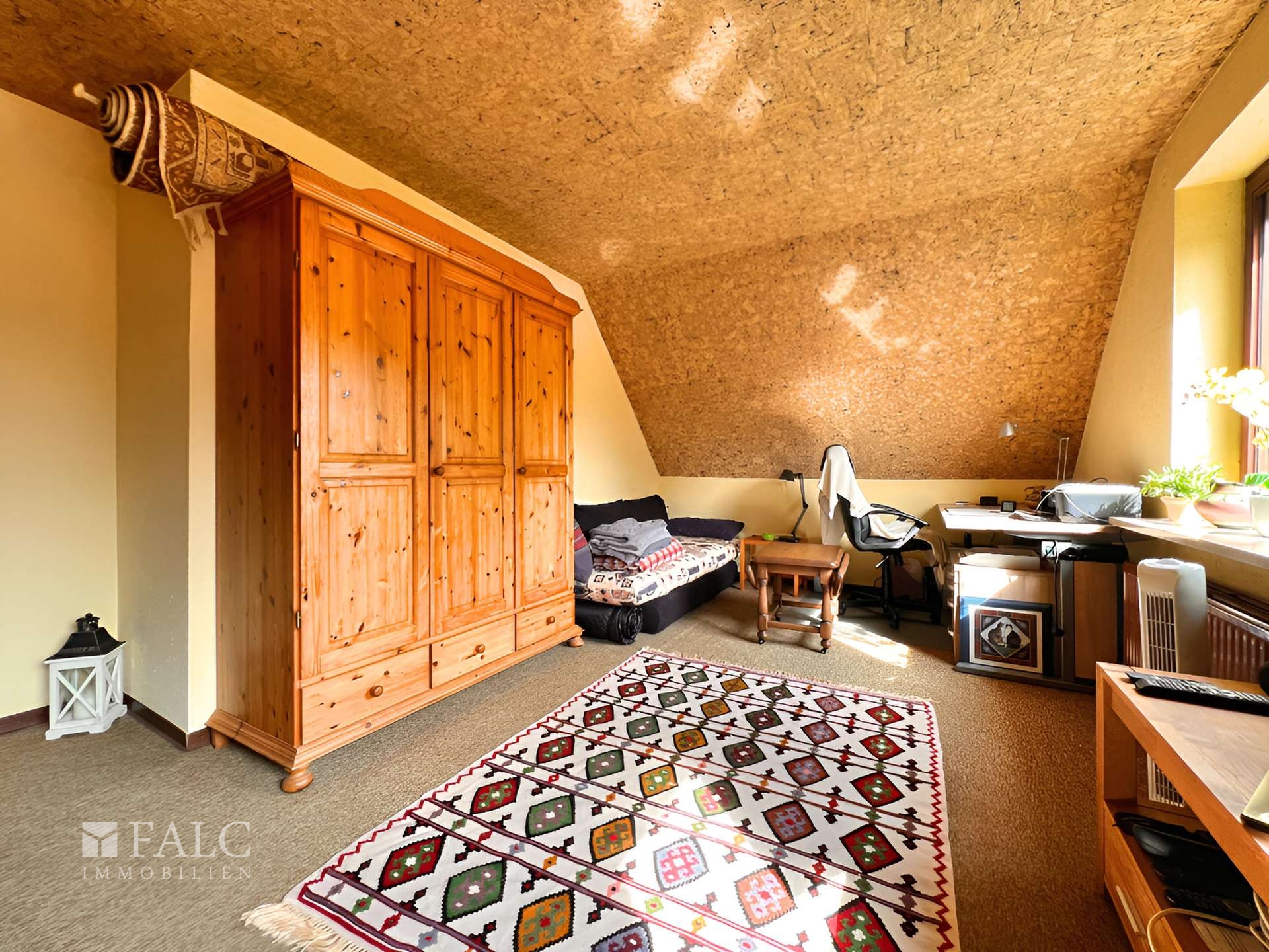 Über die Treppe im Flur erreichen Sie das ausgebaute Dachgeschoss. Drei weitere, helle Zimmer eröffnen hier zusätzlichen Wohnraum – ideal als private Rückzugsorte, Arbeitsbereiche oder weitere Kinderzimmer. Ein weiteres Highlight ist das zweite Badezimmer mit Badewanne, die zusätzlich mit einer Whirlpoolfunktion ausgestattet ist.