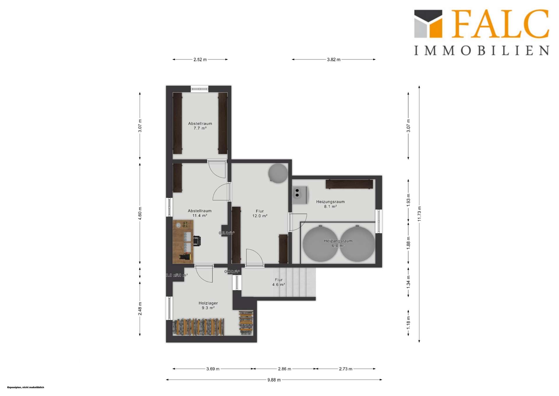 - separates Holzlager im Keller (Befüllung von außen möglich)