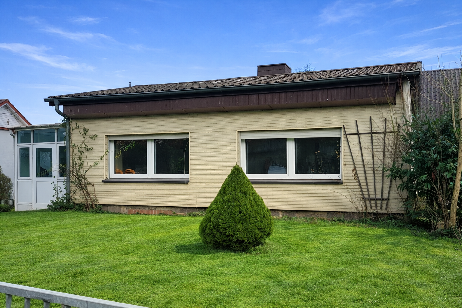 Zum Verkauf steht ein Einfamilienhaus in eingeschossiger Bauweise aus dem Jahr 1961 mit einer Wohnfläche von ca. 99 m², gelegen auf einem großzügigen Grundstück von rund 1.400 m². Die Immobilie überzeugt durch ihre klassische Bungalowstruktur mit Erd- und Kellergeschoss sowie durch zahlreiche Nebenflächen, die vielfältige Nutzungsmöglichkeiten eröffnen.