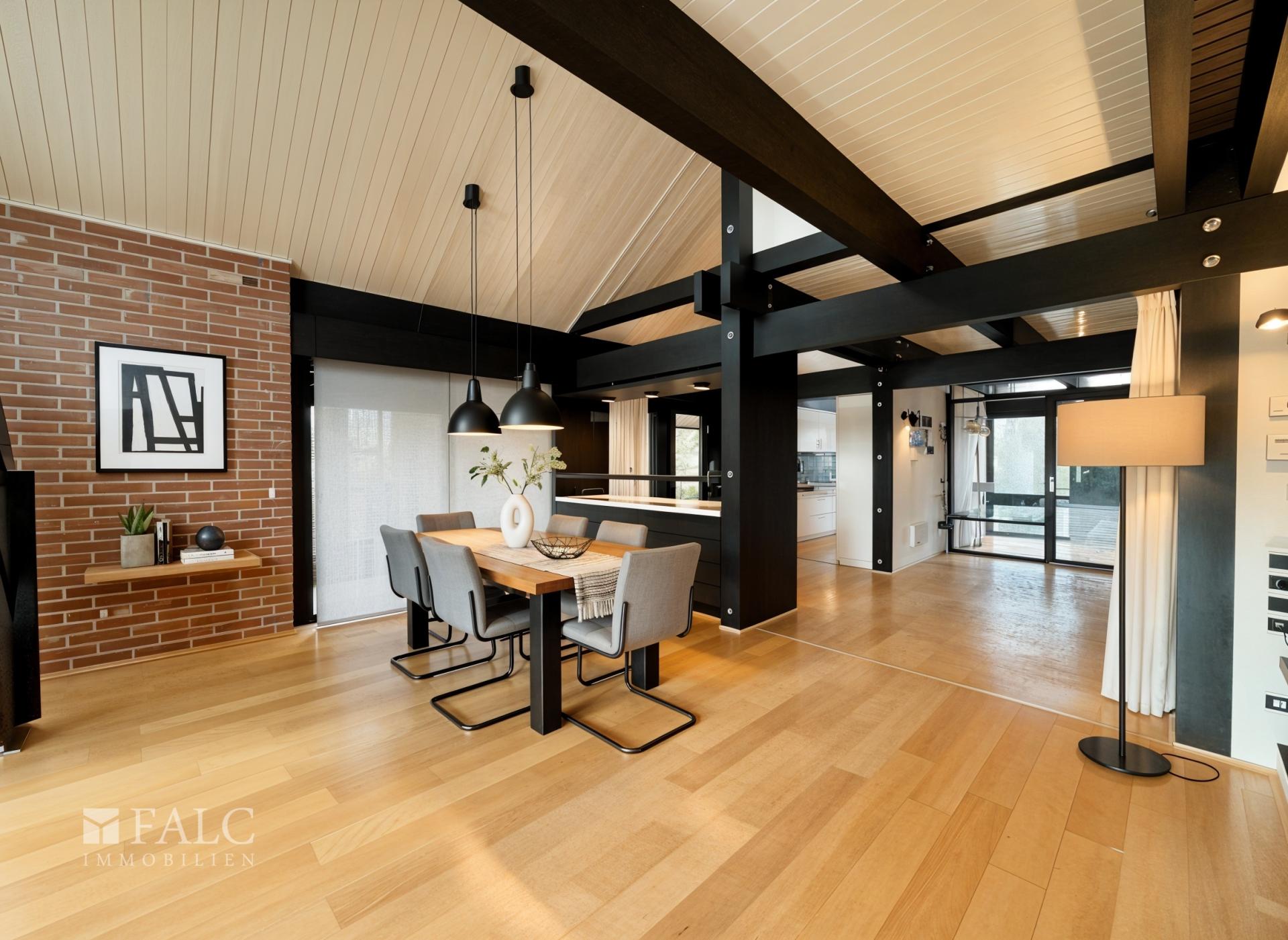 Dieses freistehende Fachwerkhaus aus dem Jahr 1974 bietet als hochwertiges HUF-Fertighaus vom Typ „2000“ ein einzigartiges Wohnambiente auf einer Gesamtwohnfläche von ca. 165 m². Das großzügige Grundstück umfasst ca. 1.222 m² und bietet vielfältige Nutzungsmöglichkeiten sowie ein hohes Maß an Privatsphäre. Das Haus ist vollständig unterkellert und verfügt zusätzlich über ein aktives Alarmsystem. Ein weiterer Vorteil für Käufer: Das Objekt wird teils möbliert verkauft – das enthaltene Mobiliar unterliegt nicht der Grunderwerbsteuer. Zudem ist das gesamte Haus mit einer komfortablen Fußbodenheizung ausgestattet.