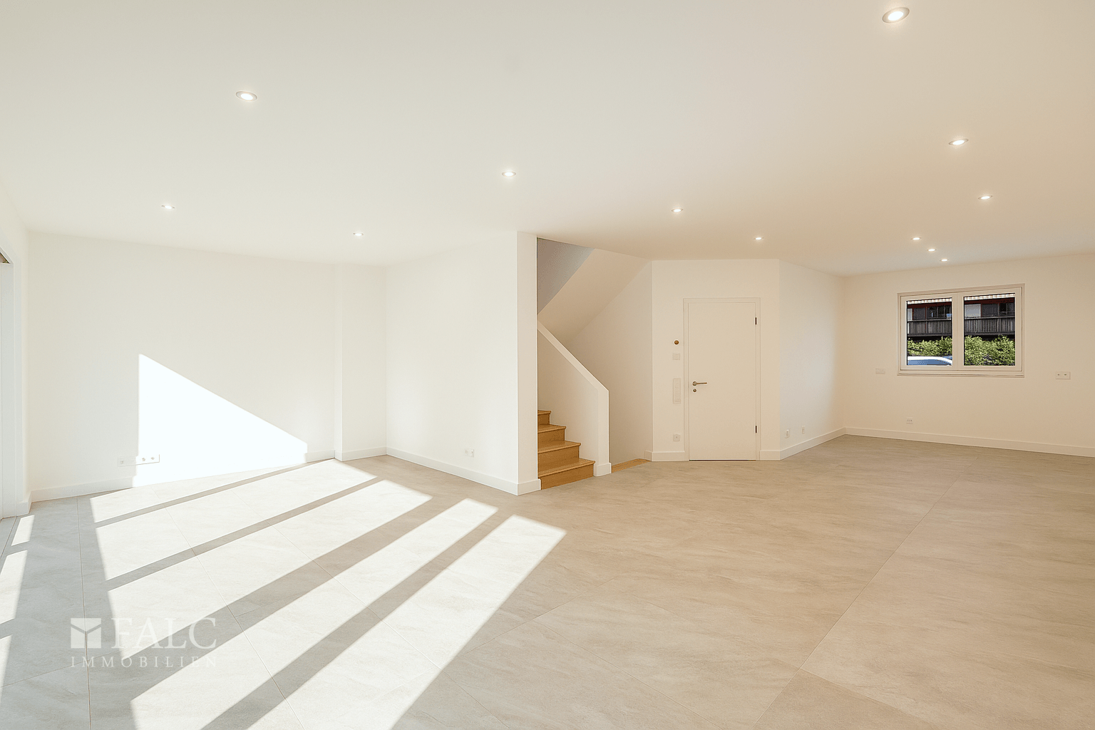 - Großformatige Bodenfliesen (bis 120×60 cm) im EG