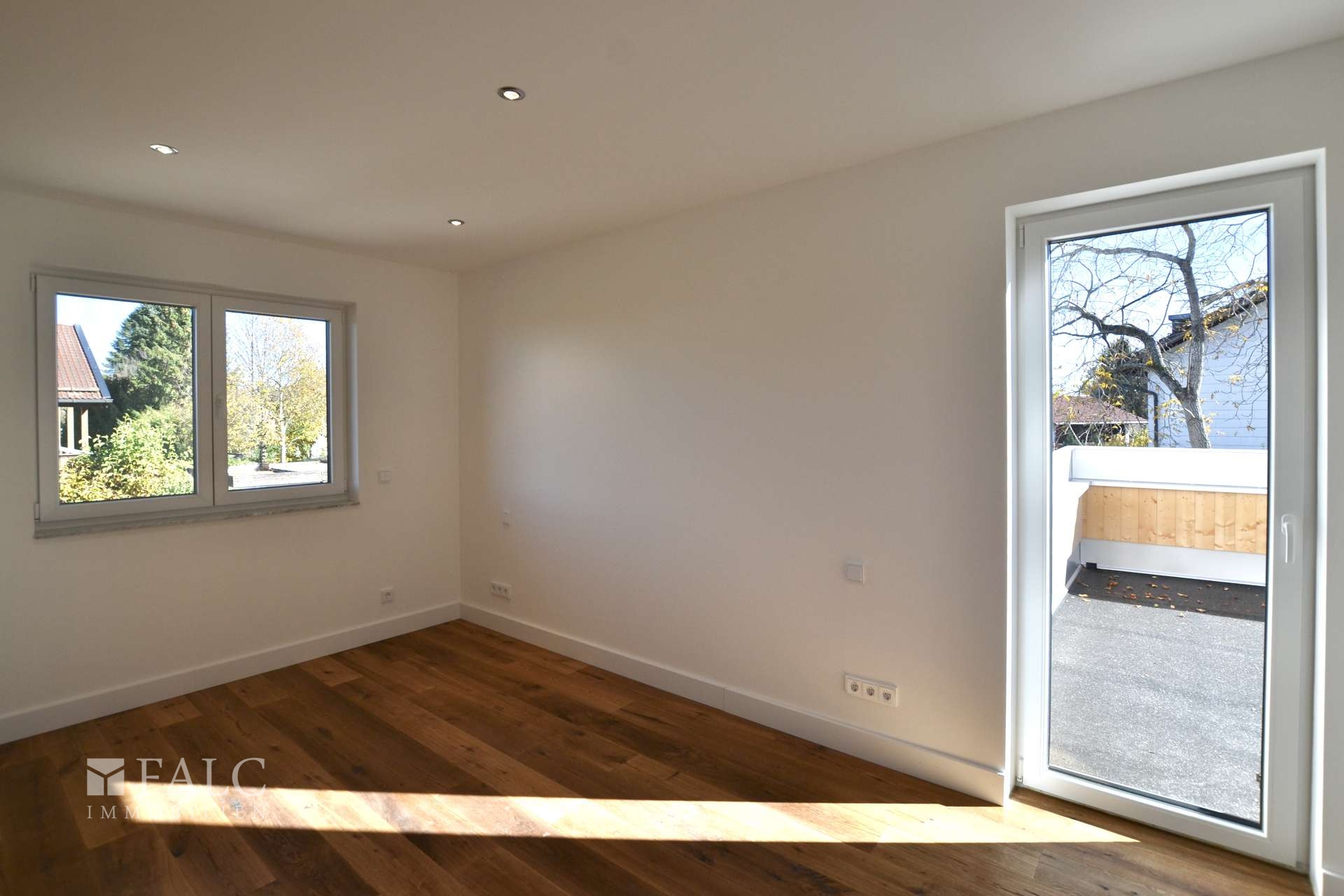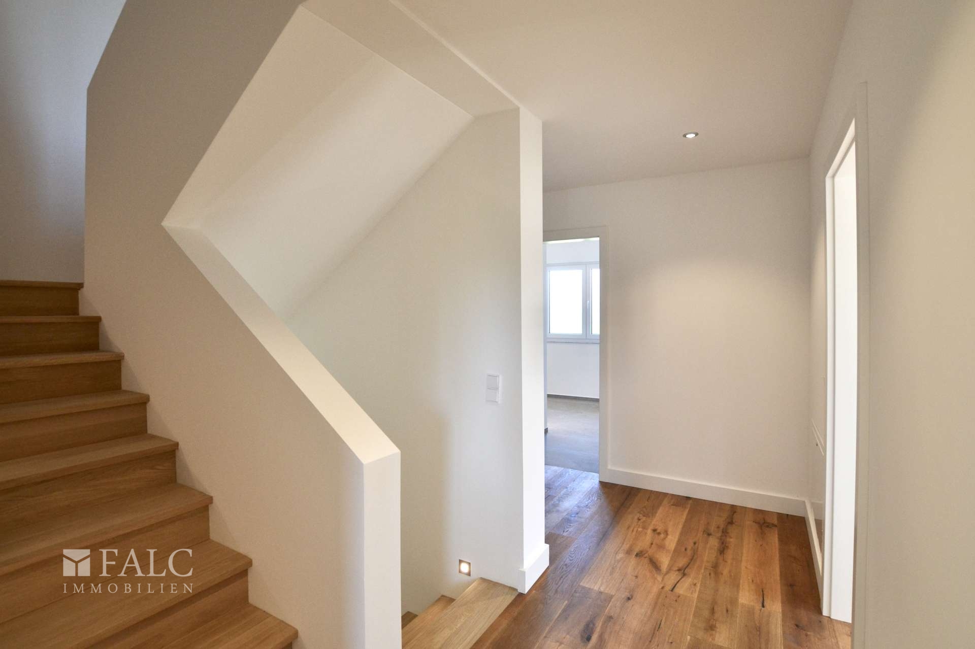 Im Obergeschoss befinden sich 2 Schlafzimmer mit Zugang zu einer ca. 18 m² großen, uneinsehbaren Dachterrasse und zwei hochwertig ausgestatteten Vollbädern. Das ausgebaute Dachgeschoss bietet weiteren Wohnraum – ideal als Home-Office oder Kinderzimmer. Im Untergeschoss befindet sich ein helles Gästezimmer mit Tageslicht und eigenem Bad – perfekt für Besucher, ein Au-pair oder eine Pflegekraft.