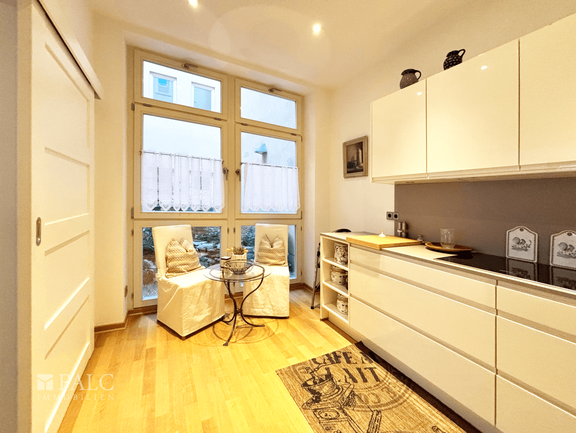 Ein besonderes Highlight: Zugänglich vom privaten Wohnraum gelangt man in den einzigartigen, wenn auch kleinen, Lichthof und erhält hiermit die Gelegenheit einer Einzigartigen Oase.