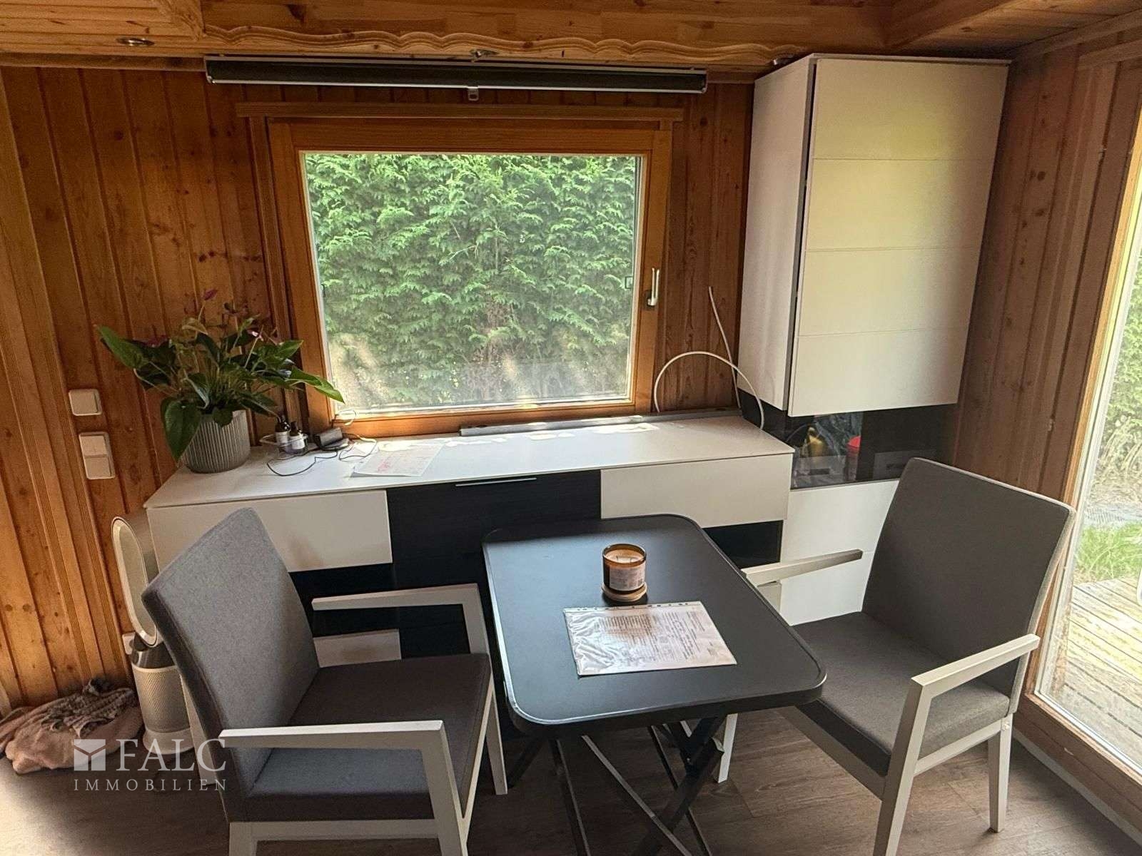 Dieses solide errichtete Gartenhaus in Holz- und Leichtbauweise bietet auf kompakten 24 m² eine durchdachte Raumaufteilung mit Aufenthaltsbereich, integrierter Küchenzeile, Schlafboden und modernem Sanitärbereich. Das Gebäude steht auf einem Streifenfundament und verfügt über einen Betonfußboden mit Holzverlegung, eine Ziegeldachdeckung sowie vorgehängte Dachrinnen. Die Fenster sind in Aluminiumrahmen mit Doppelverglasung ausgeführt und sorgen für gute Wärmedämmung.