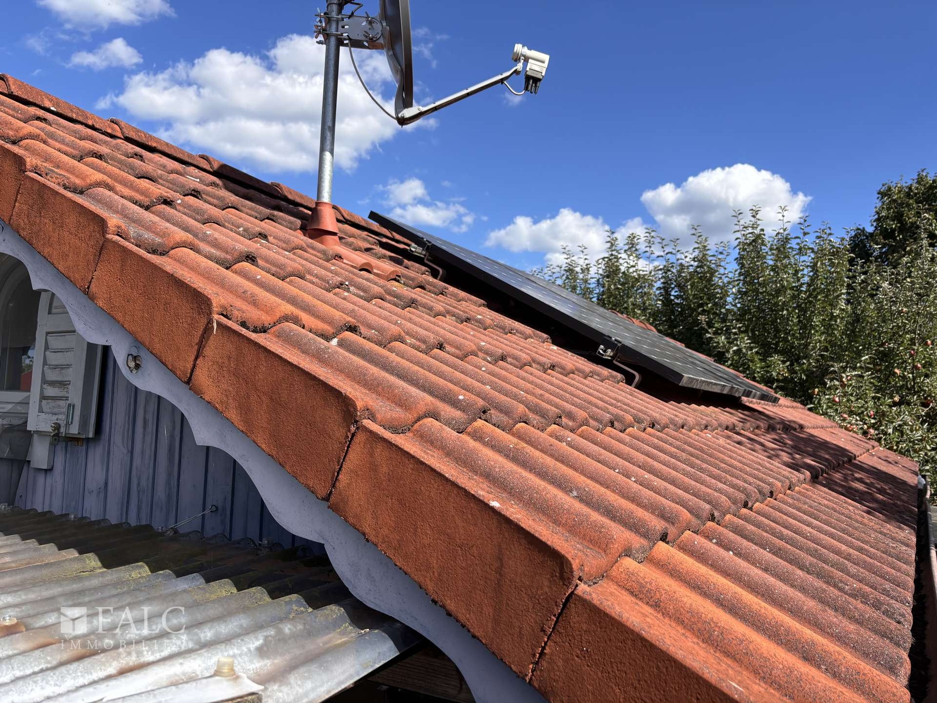 - Boden und Dach: Betonboden mit Holzverlegung; Dachziegeldeckung mit Regenrinnen