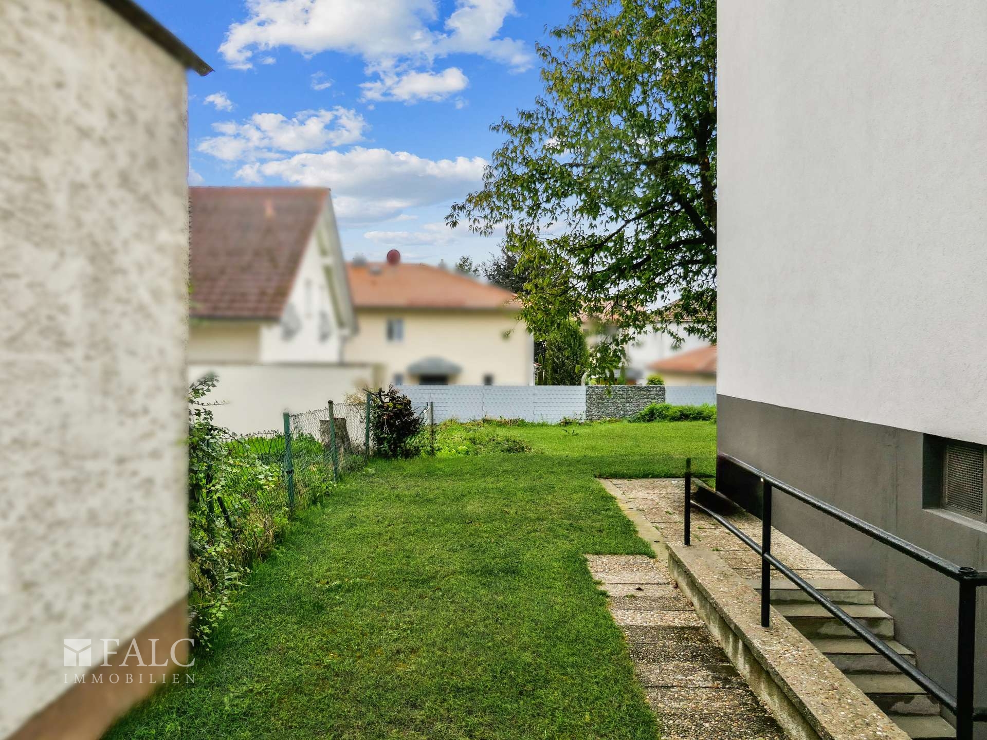 Beim Grundstück mit ca. 602 m² spricht man von einem sogenannten Hinterliegergrundstück, da es nicht direkt an der ohnehin wenig befahrenen Straße, 30-er-Zone-Straße, liegt, sondern in zweiter Reihe, ruhig und sonnig zwischen Häusern eingebettet.