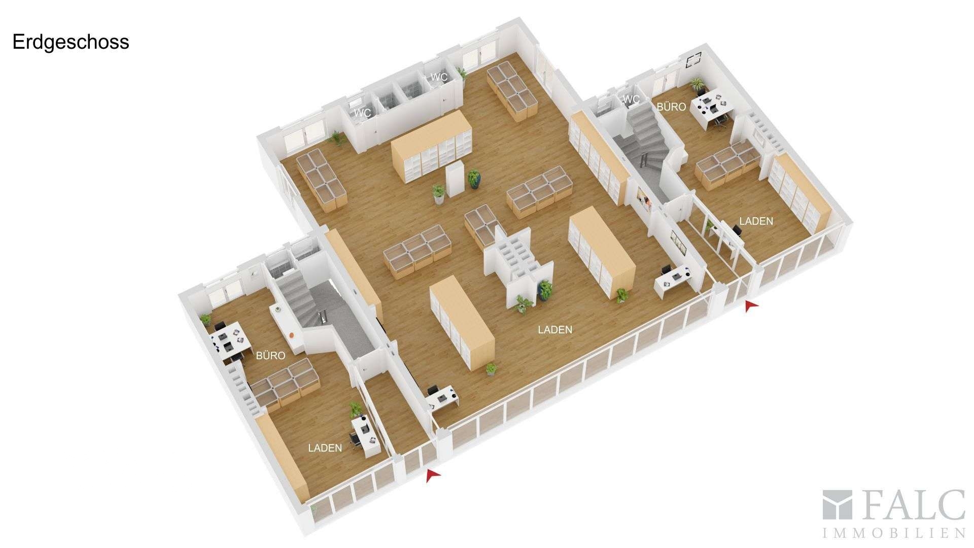 Das Erdgeschoss bietet vielseitige Nutzungsmöglichkeiten auf einer Fläche von 1022,12 m², ideal für Gewerbetreibende, die von der lichtdurchfluteten Atmosphäre profitieren möchten. Die oberen Etagen beherbergen flexible Büro- und Wohneinheiten, die durch ihre funktionale Aufteilung und helle Räume bestechen.