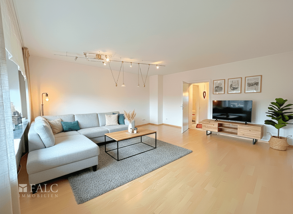 Auf der linken Seite des Flurs befindet sich ein vielseitig nutzbares Zimmer, das sich ideal als Arbeits- oder Gästezimmer eignet. Dahinter erreichen Sie das großzügige Wohnzimmer, das mit einem Zugang zum Balkon punktet. Der Balkon bietet Ihnen einen angenehmen Rückzugsort, um frische Luft zu genießen und sich zu entspannen.