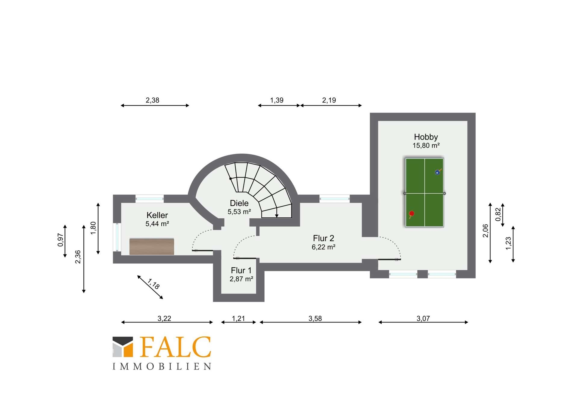 Zur Wohnung gehören im Untergeschoss ein eigenes Kellerabteil sowie ein ca. 16 m² großer Hobbyraum. Dieser eignet sich aufgrund seiner Größe und seines Zuschnitts hervorragend als Arbeitszimmer, Homeoffice oder auch als Wellnessbereich und ergänzt das Wohnangebot auf sinnvolle Weise.