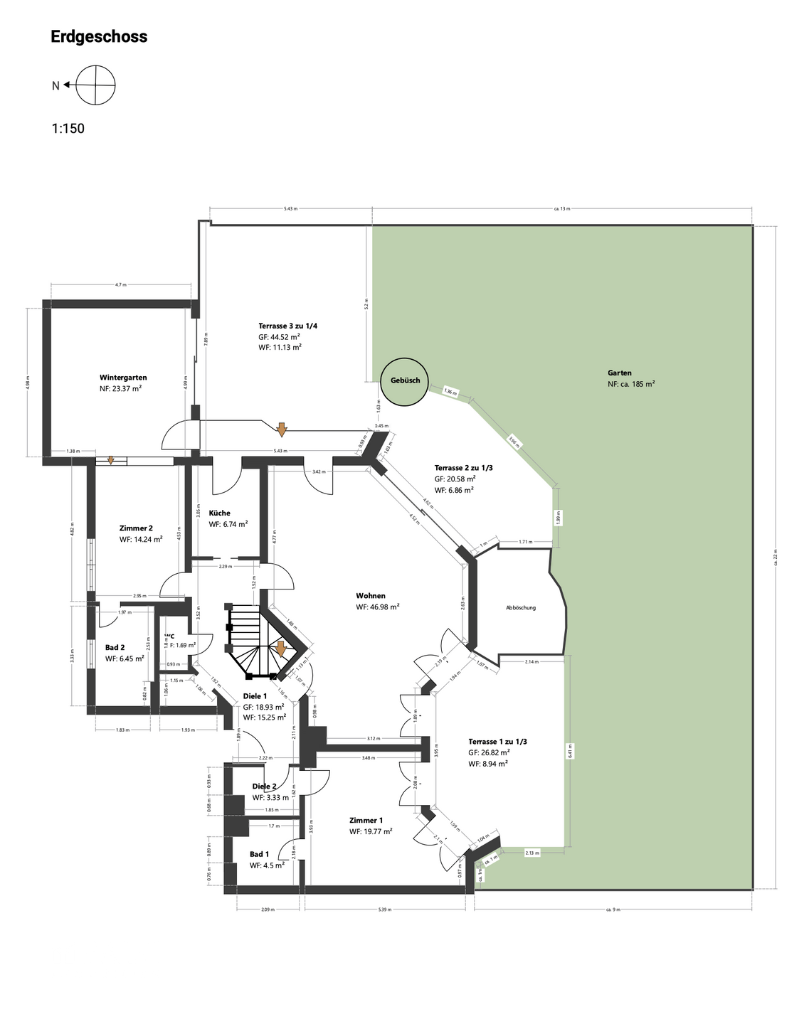 + Garten mit ca. 185 m² Nutzfläche