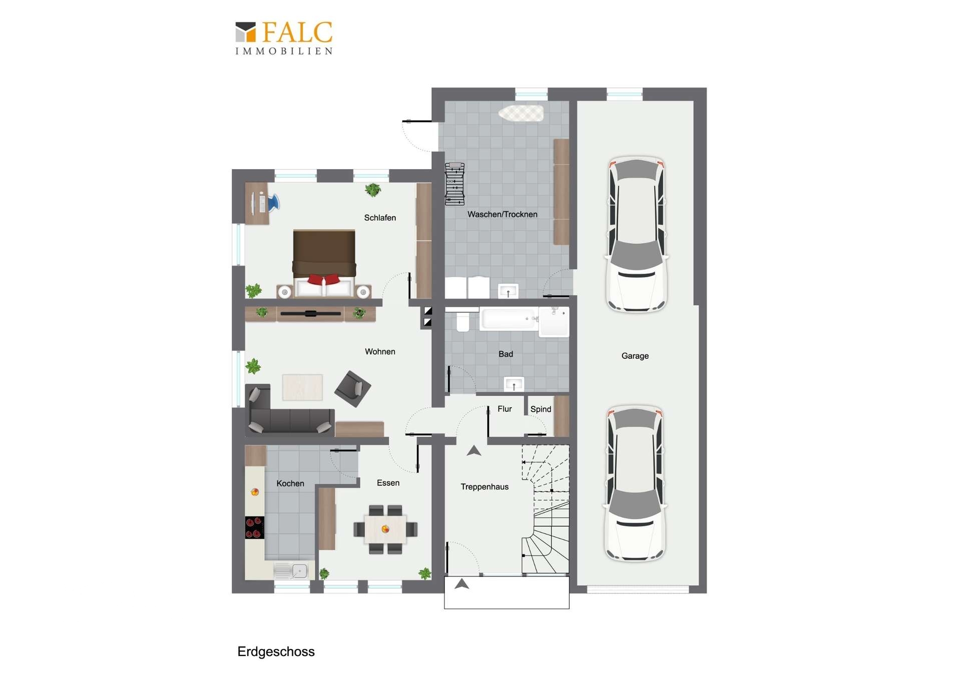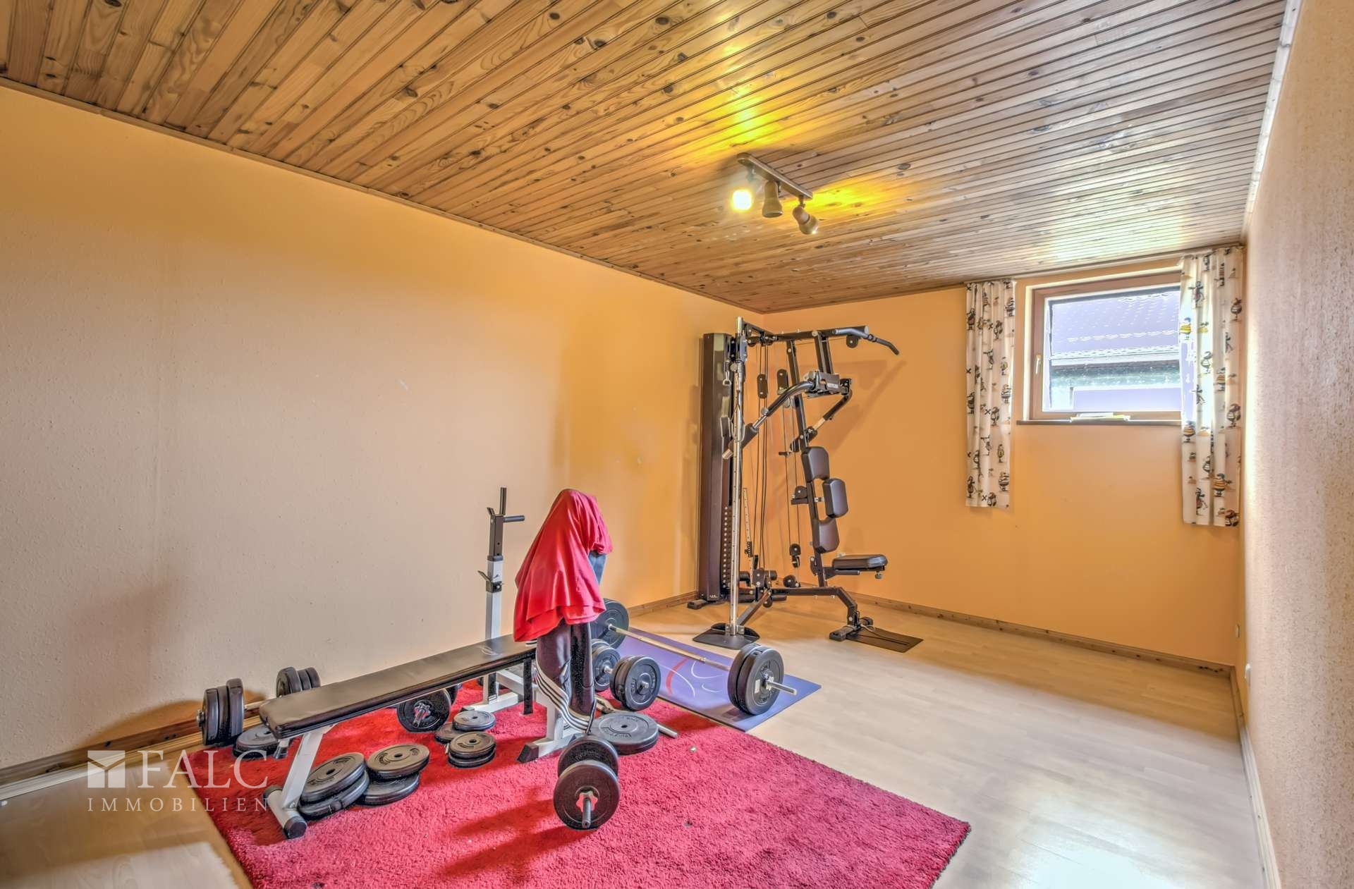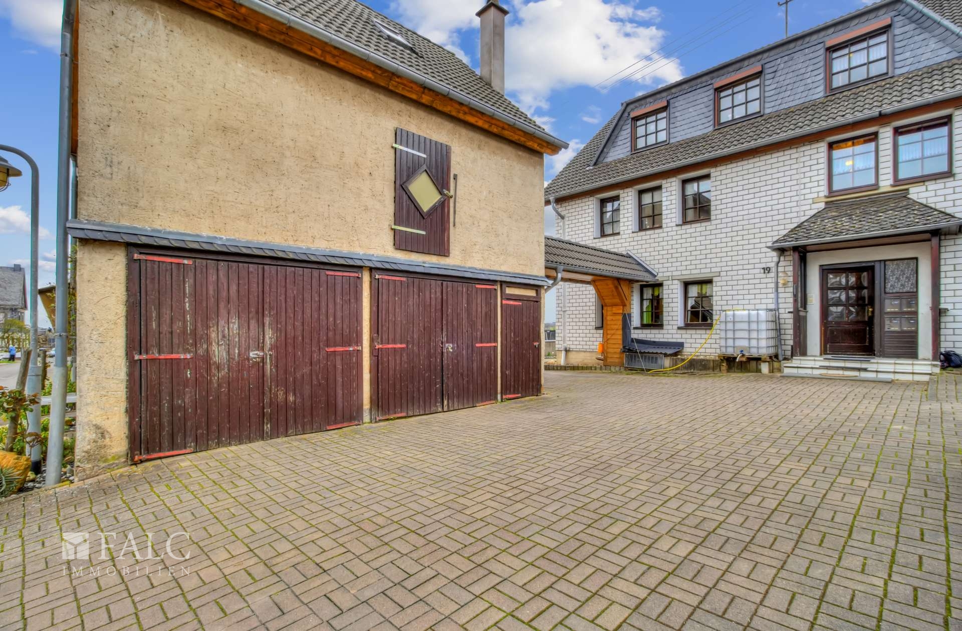 Zu dem Einfamilienhaus gehört eine Doppelgarage. Über der Garage befindet sich noch ein Raum, der in der Vergangenheit als Partyraum diente und über die Treppe im Hof zu erreichen ist.