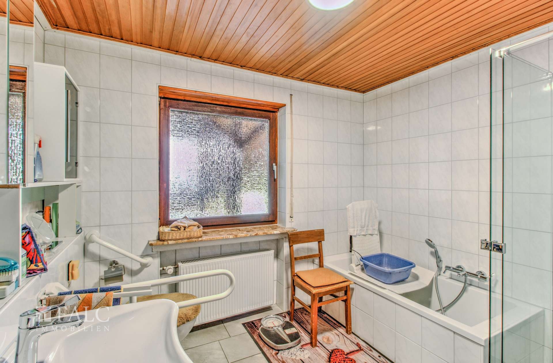 Das Einfamilienhaus liegt auf dem hinteren Teil des Grundstücks und hat einen traumhaften Blick in die Natur.