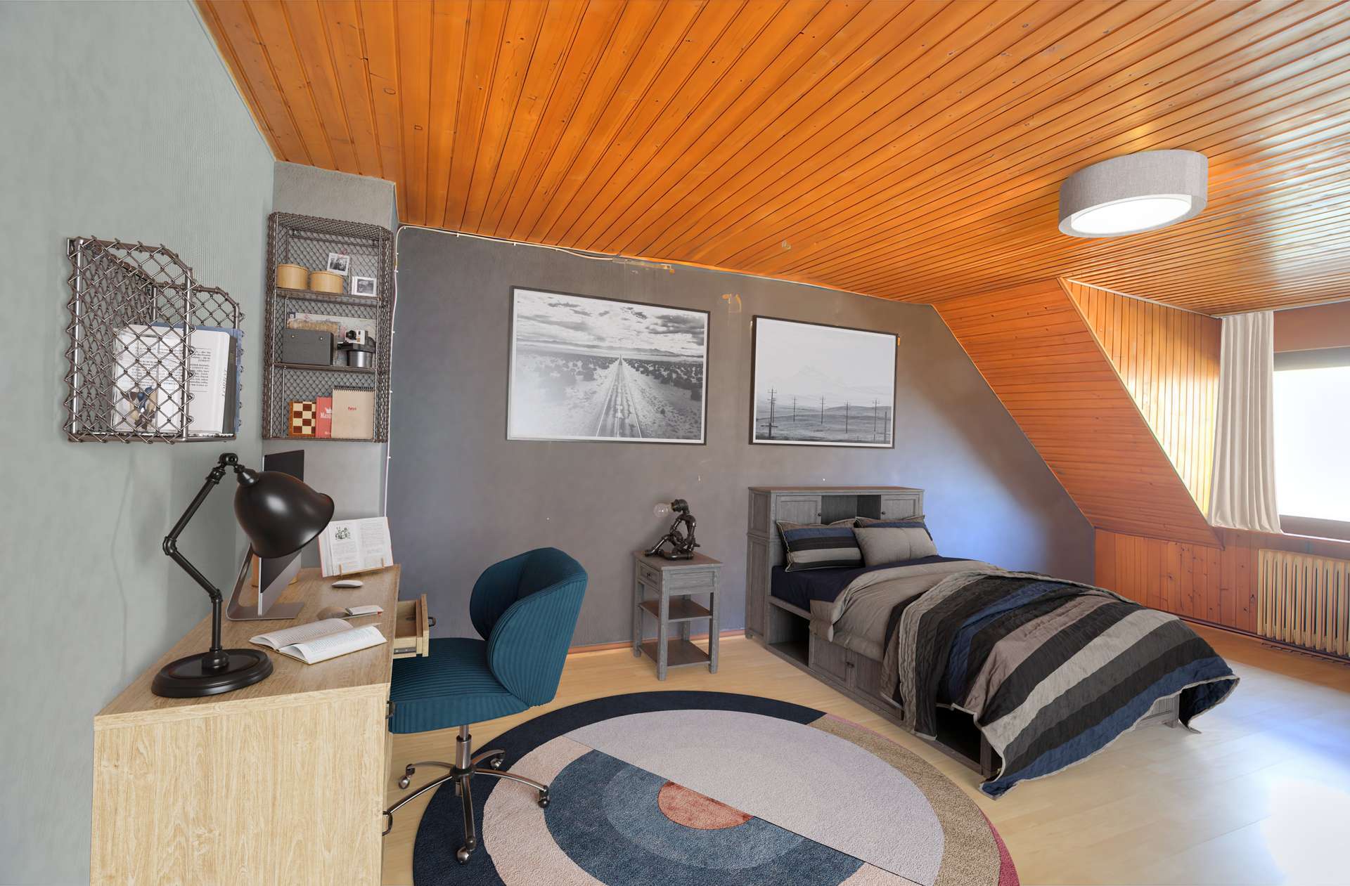Bei einigen Fotos wurden die Möbel und Dekoration virtuell hinzugefügt sowie der Raum zum teil bzw. komplett virtuell renoviert.