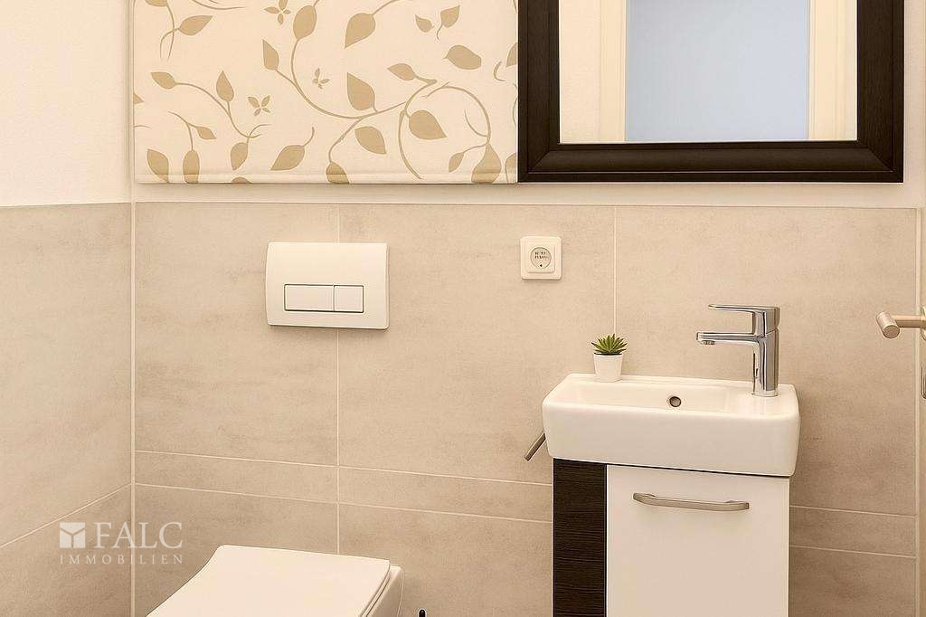 • Modernes Badezimmer mit Dusche und Fensterlüftung