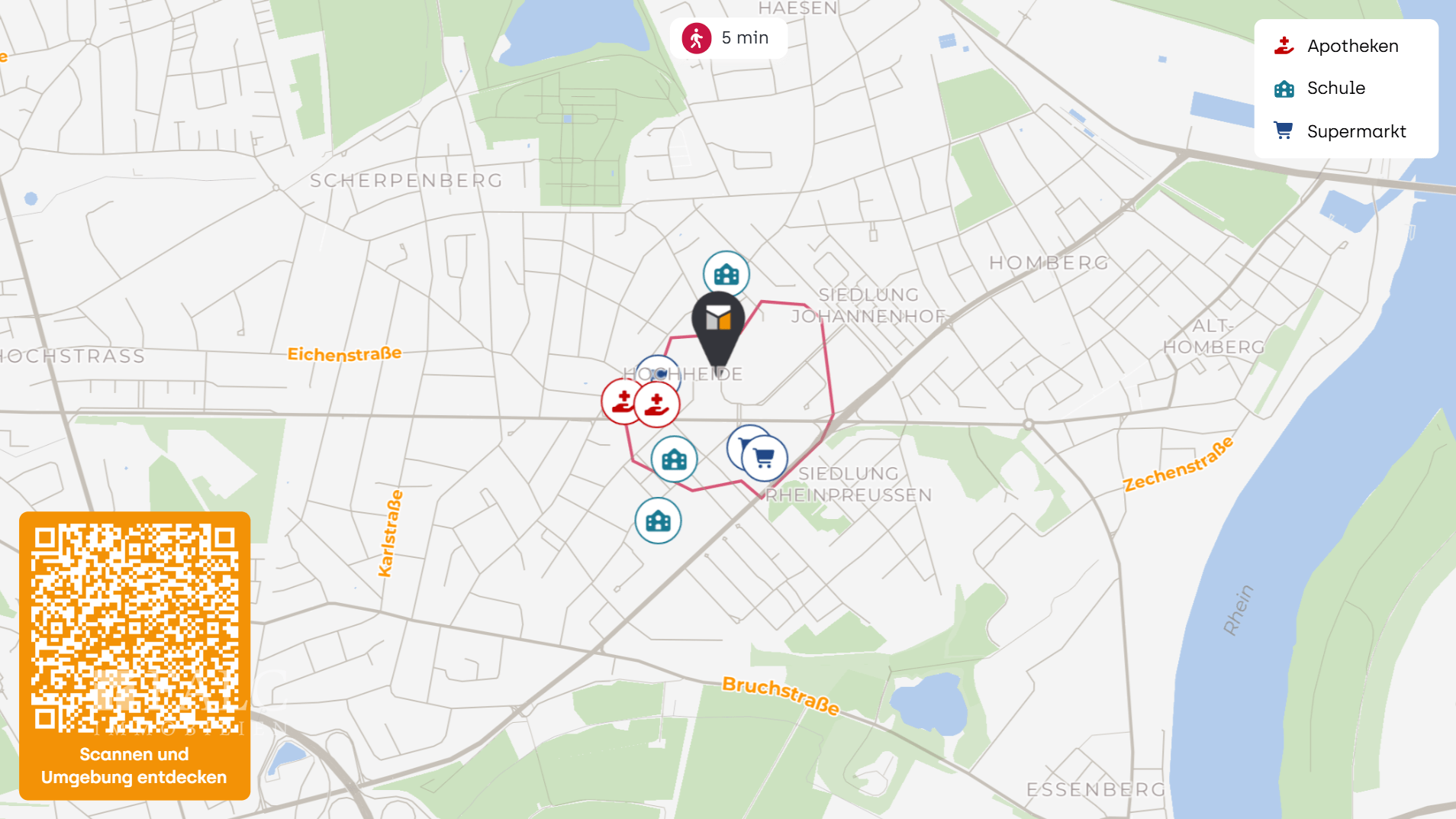 Hochheide ist ein linksrheinischer Stadtteil von Duisburg und Teil des Stadtbezirks Homberg/Ruhrort/Baerl mit 15.188 Einwohnern und einer Fläche von 320 ha. Der Stadtteil ist eng verbunden mit dem Stadtteil Alt-Homberg im Osten und geht siedlungstechnisch ohne erkennbare Grenze in die Stadt Moers im Westen über. (Wikipedia)