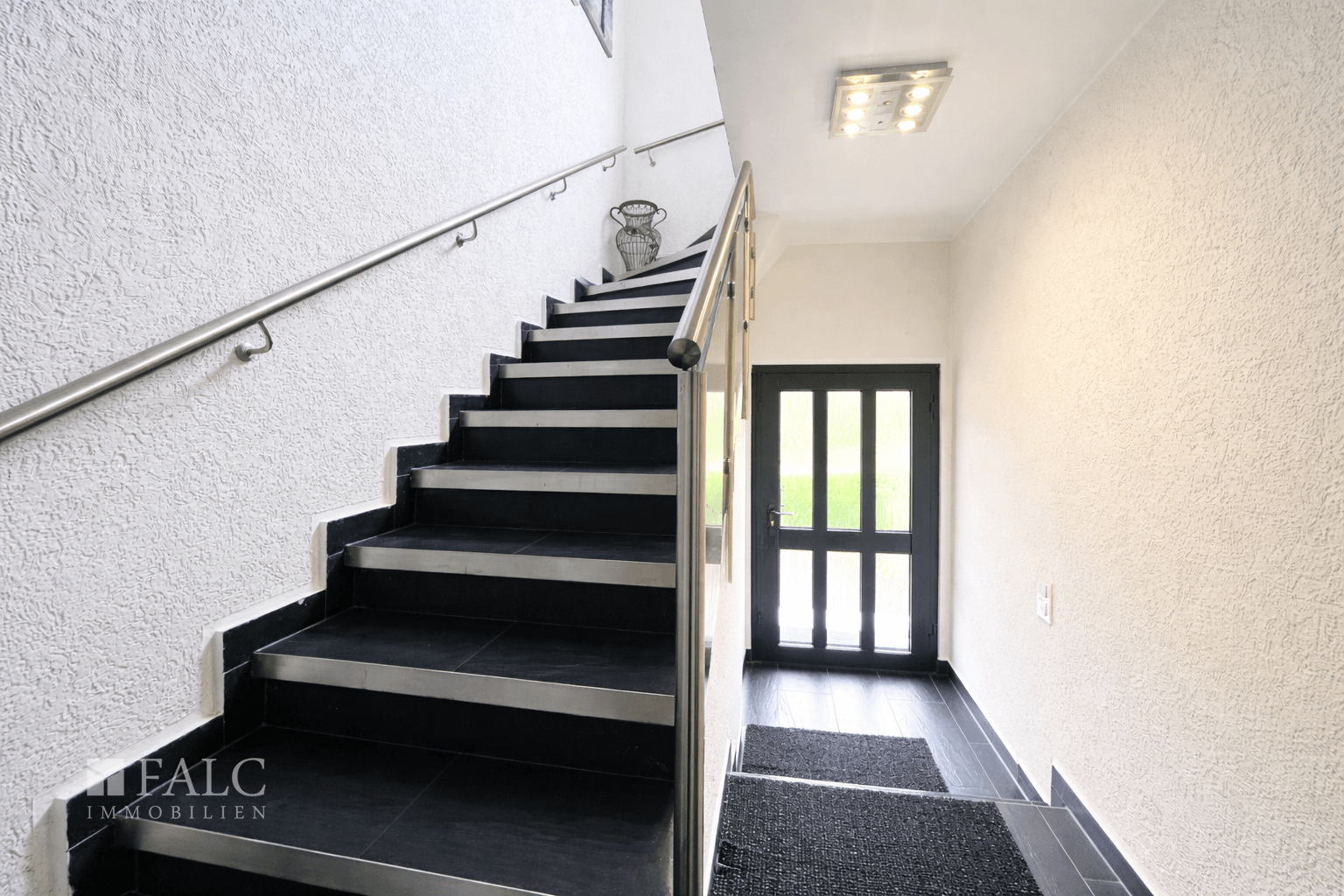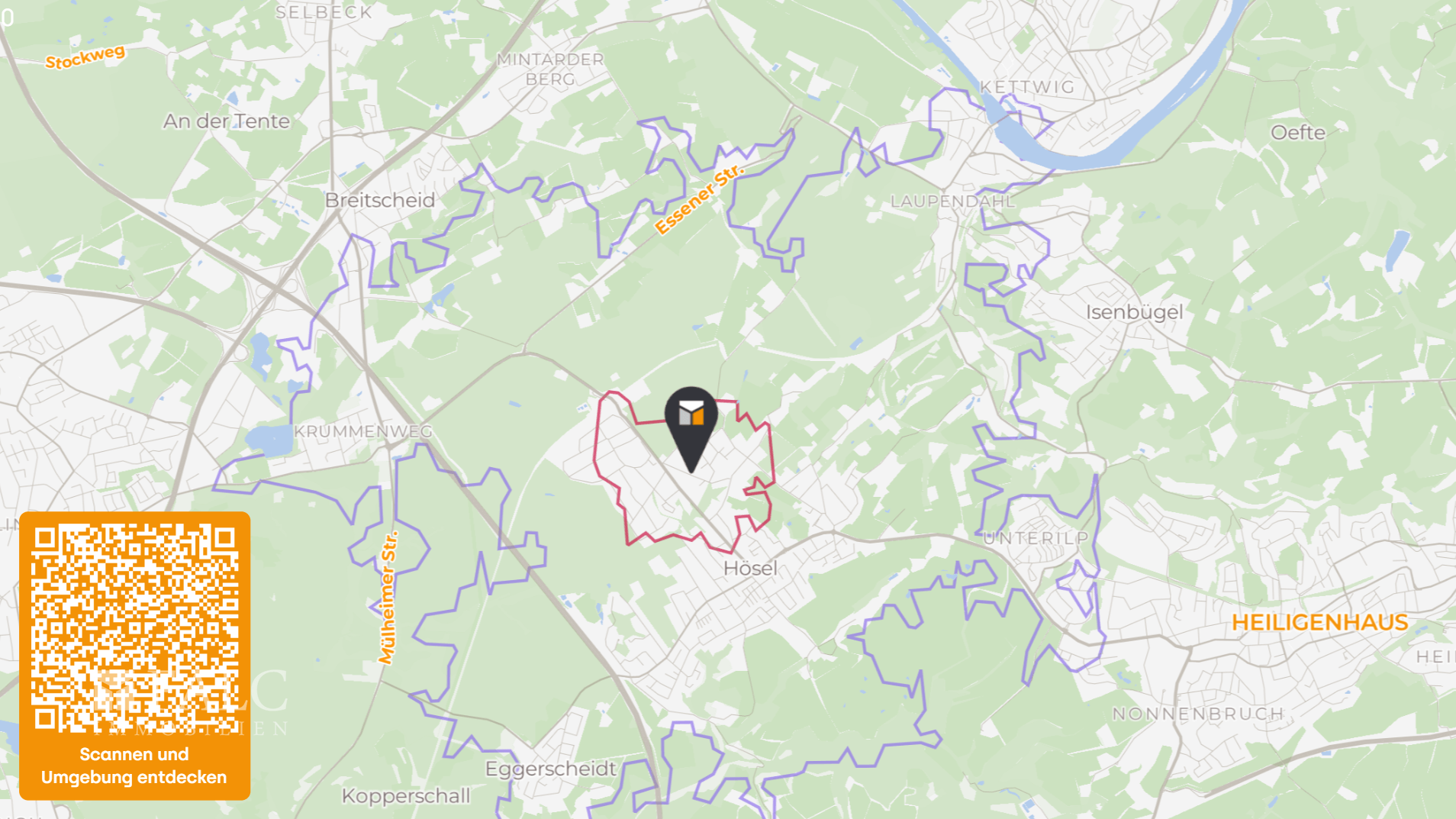 Die Anbindung an den öffentlichen Nahverkehr ist hervorragend. Mehrere Bushaltestellen sowie die Bahnstation Hösel sind bequem zu Fuß erreichbar und ermöglichen eine schnelle Verbindung in Richtung Düsseldorf, Essen und Umgebung. Auch die Autobahn ist in kurzer Fahrzeit erreichbar und sorgt für eine sehr gute regionale und überregionale Mobilität.