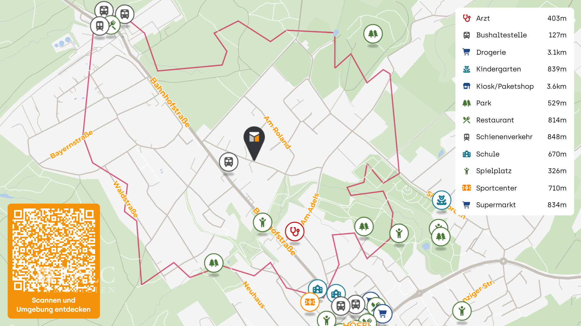 Insgesamt verbindet diese Wohnlage ruhiges Wohnen im Grünen mit einer sehr guten Infrastruktur und optimaler Verkehrsanbindung.