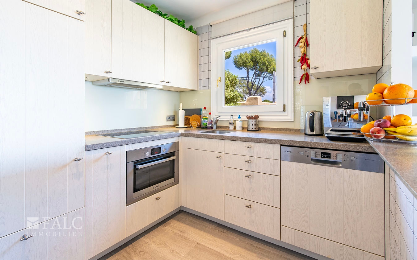 Die Wohnung wurde 2022 komplett renoviert. Die Böden sind mit Parkett verlegt, die Bäder sind gefliest. 3 Schlafzimmer, 2 Badezimmer, offene möblierte und eingerichtete Küche, Wohn-Esszimmer, Terrasse, Balkon, isolierverglaste Fenster, Einbauschränke, Moskitoschutz an den Fenstern, Klimaanlage, Infrarotheizung, 2 Parkplätze, Gemeinschftatspool und Gemeinschaftswaschraum.