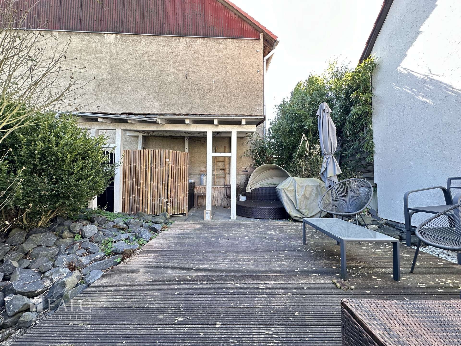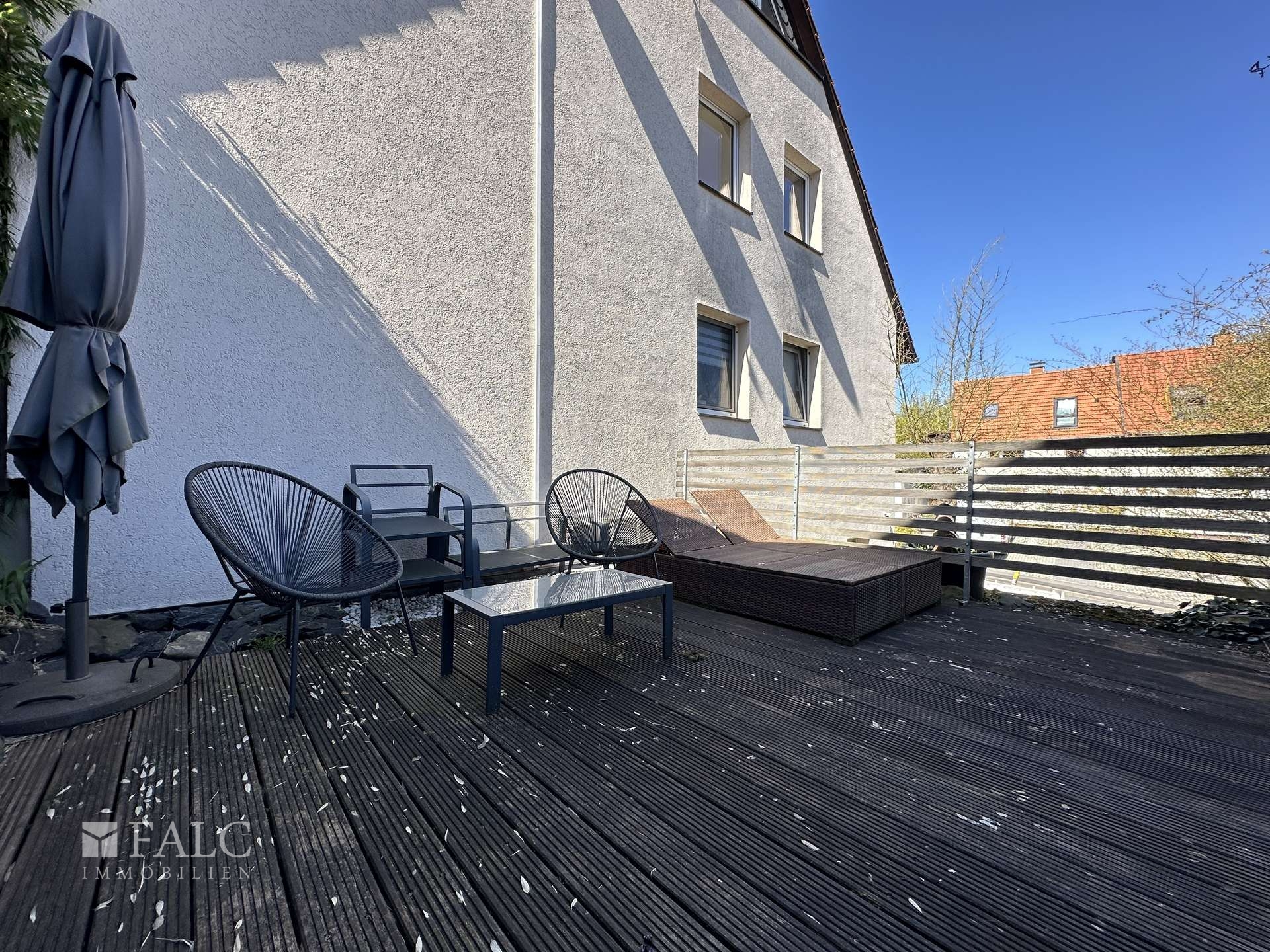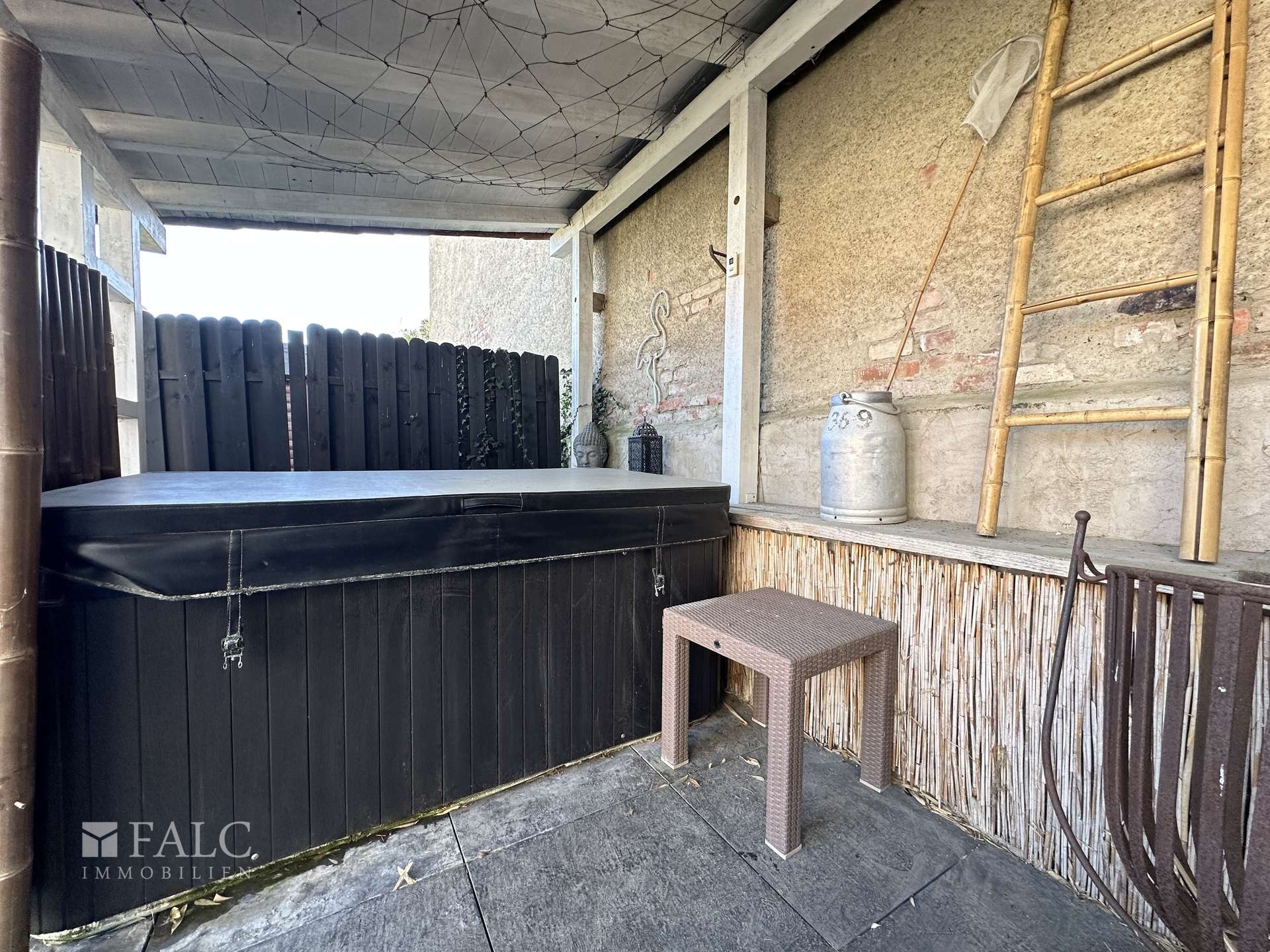 Ein besonderes Merkmal dieser Immobilie ist der eigene, separate Zugang, der viel Privatsphäre bietet. Besonders hervorzuheben ist die rund 30 m² große Terrasse, die teilweise überdacht ist und damit auch bei wechselhaftem Wetter genutzt werden kann. Unter der Überdachung befindet sich ein Whirlpool, der zusätzlichen Komfort und eine besondere Wohnqualität bietet.