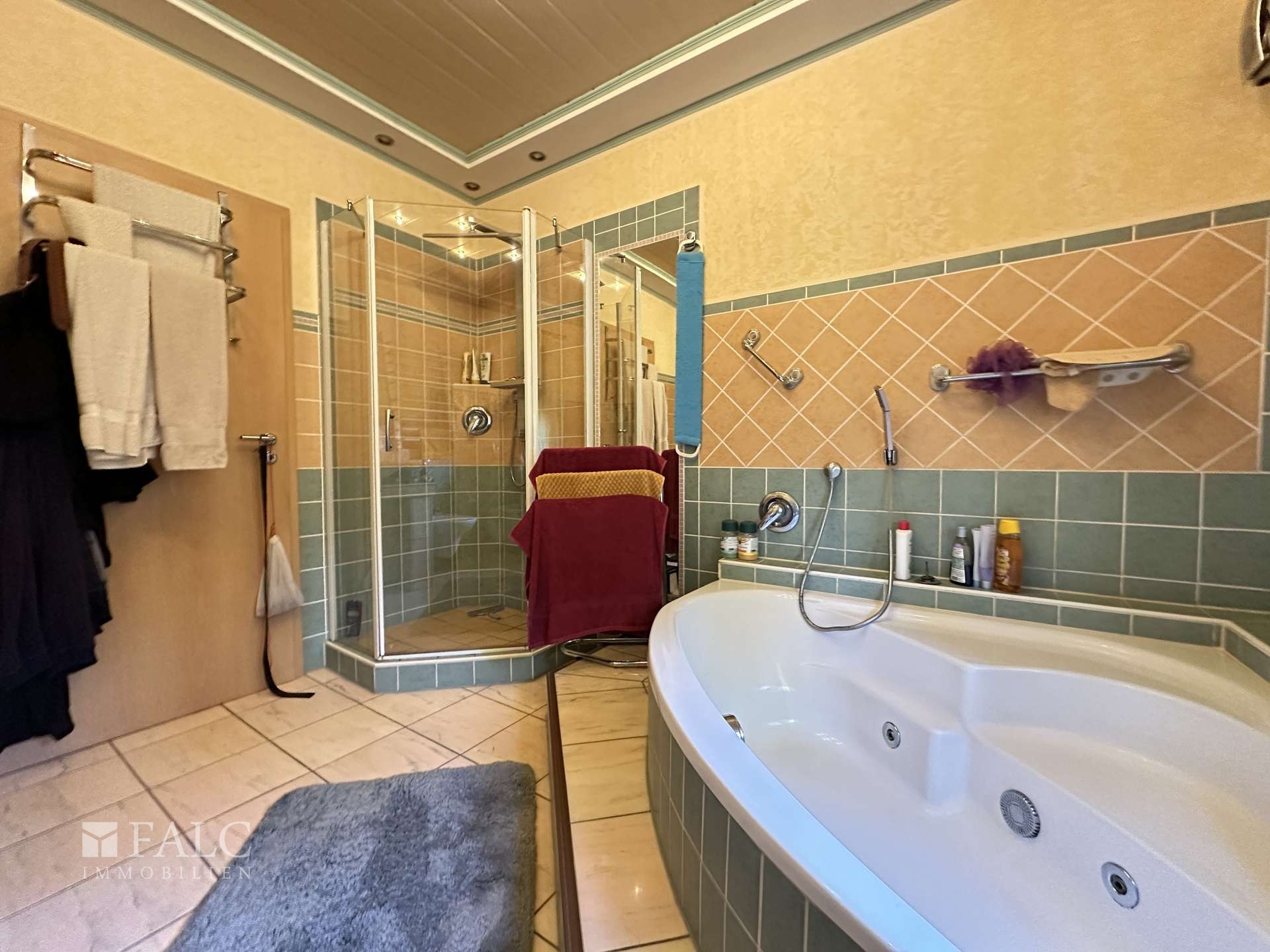 - 1 Badezimmer im Erdgeschoss mit Dusche und Whirlpool-Eckbadewanne