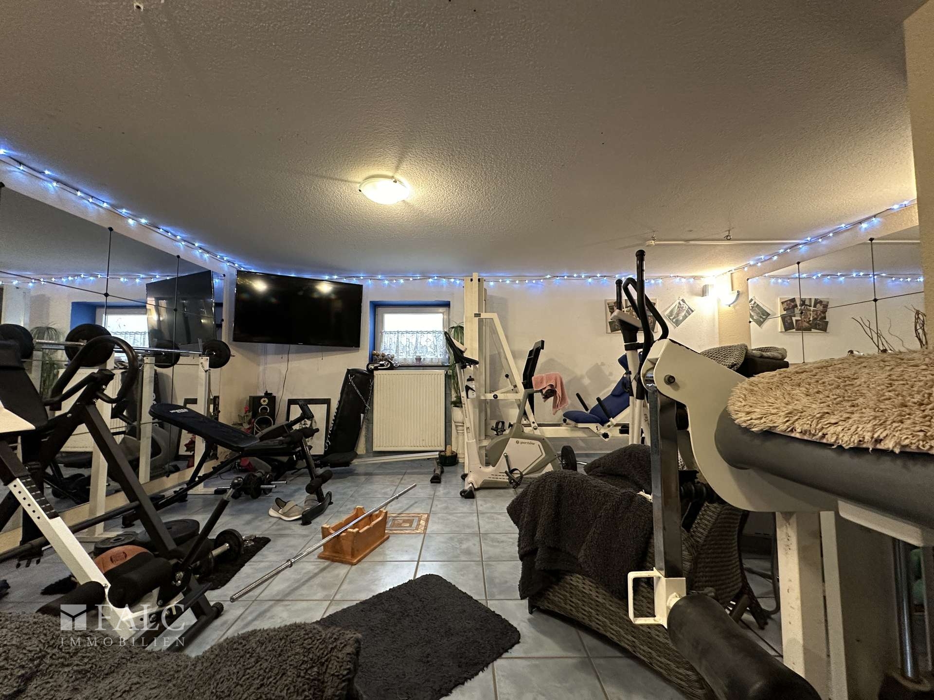 Das Haus ist vollständig unterkellert. Der geflieste Keller ist beheizt und verfügt über eine wohnliche ausgestattete Fläche von ca. 70 m², die vielseitig nutzbar ist, beispielsweise als Hobbyraum, Gäste- oder Arbeitsbereich. Auch ein weiteres Badezimmer ist im Untergeschoss vorhanden, was die Flexibilität dieses Hauses unterstreicht.