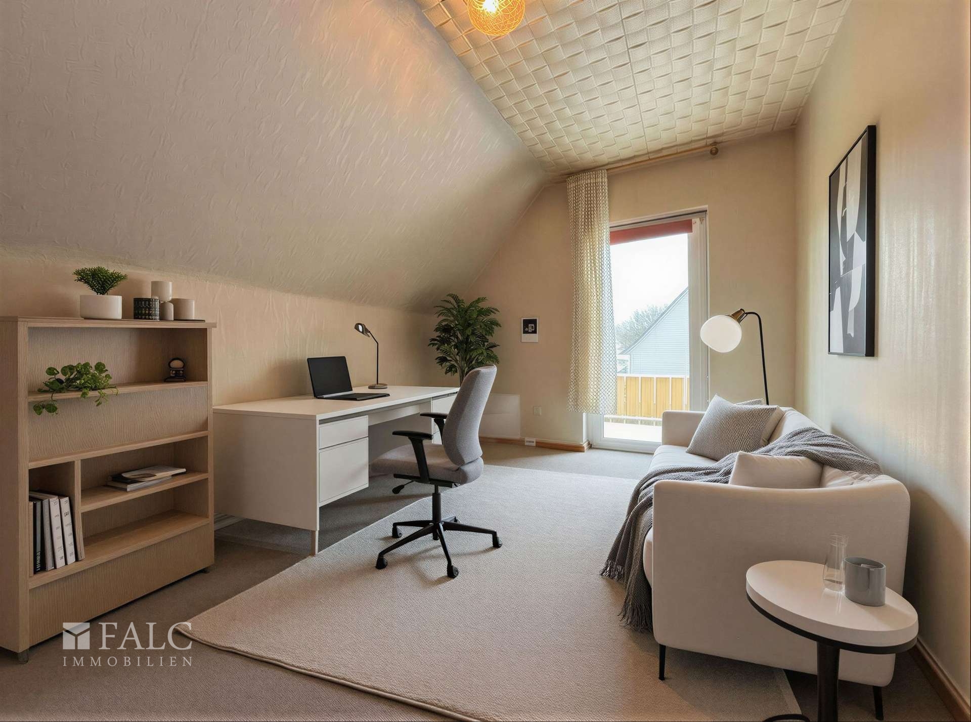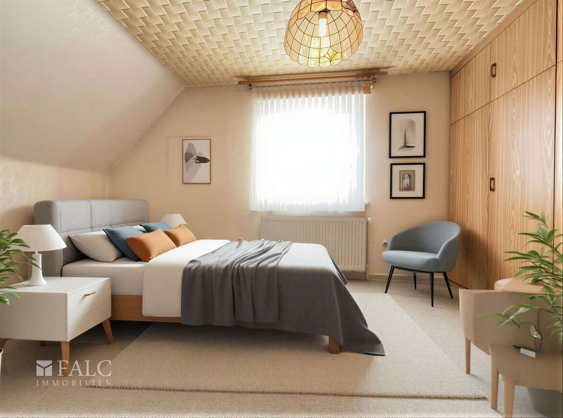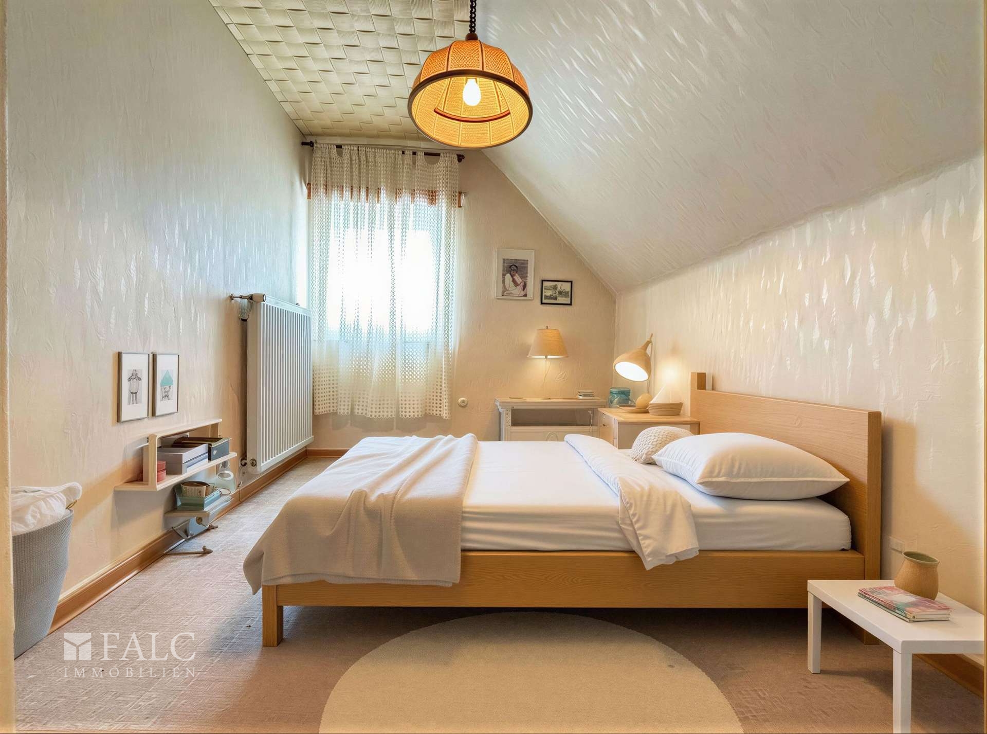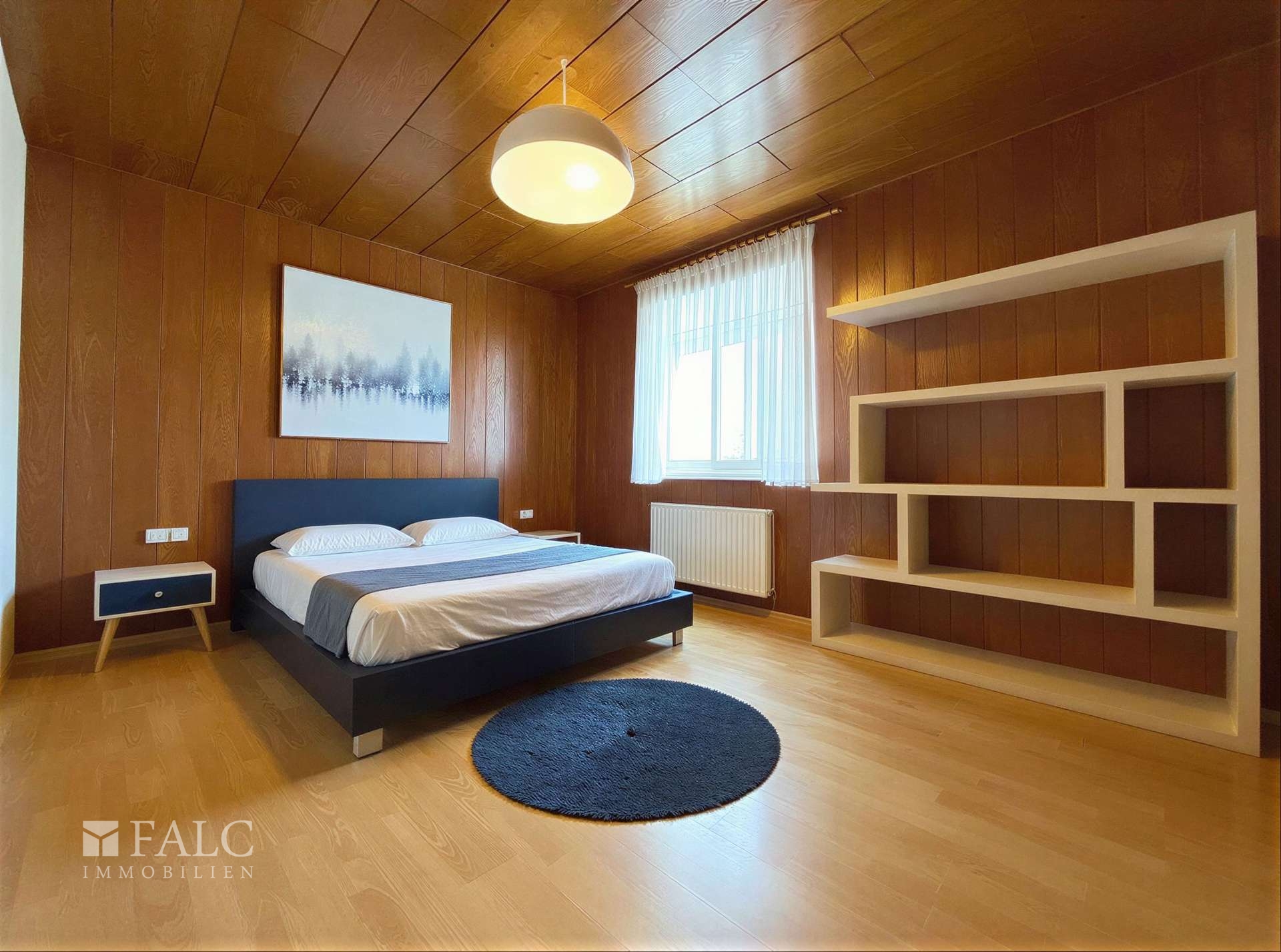 Das Obergeschoss bietet drei weitere Zimmer, die sich ideal als Schlaf-, Kinder- oder Arbeitszimmer eignen und somit unterschiedlichsten Lebenssituationen gerecht werden. Von einem der Zimmer aus besteht ein direkter Zugang zu einem großzügigen Balkon mit einer Fläche von circa 24 m², der zusätzlichen Freiraum im Außenbereich schafft und zum Verweilen sowie Entspannen einlädt. Ein weiteres WC auf dieser Ebene sorgt für eine praktische Nutzung im Alltag.