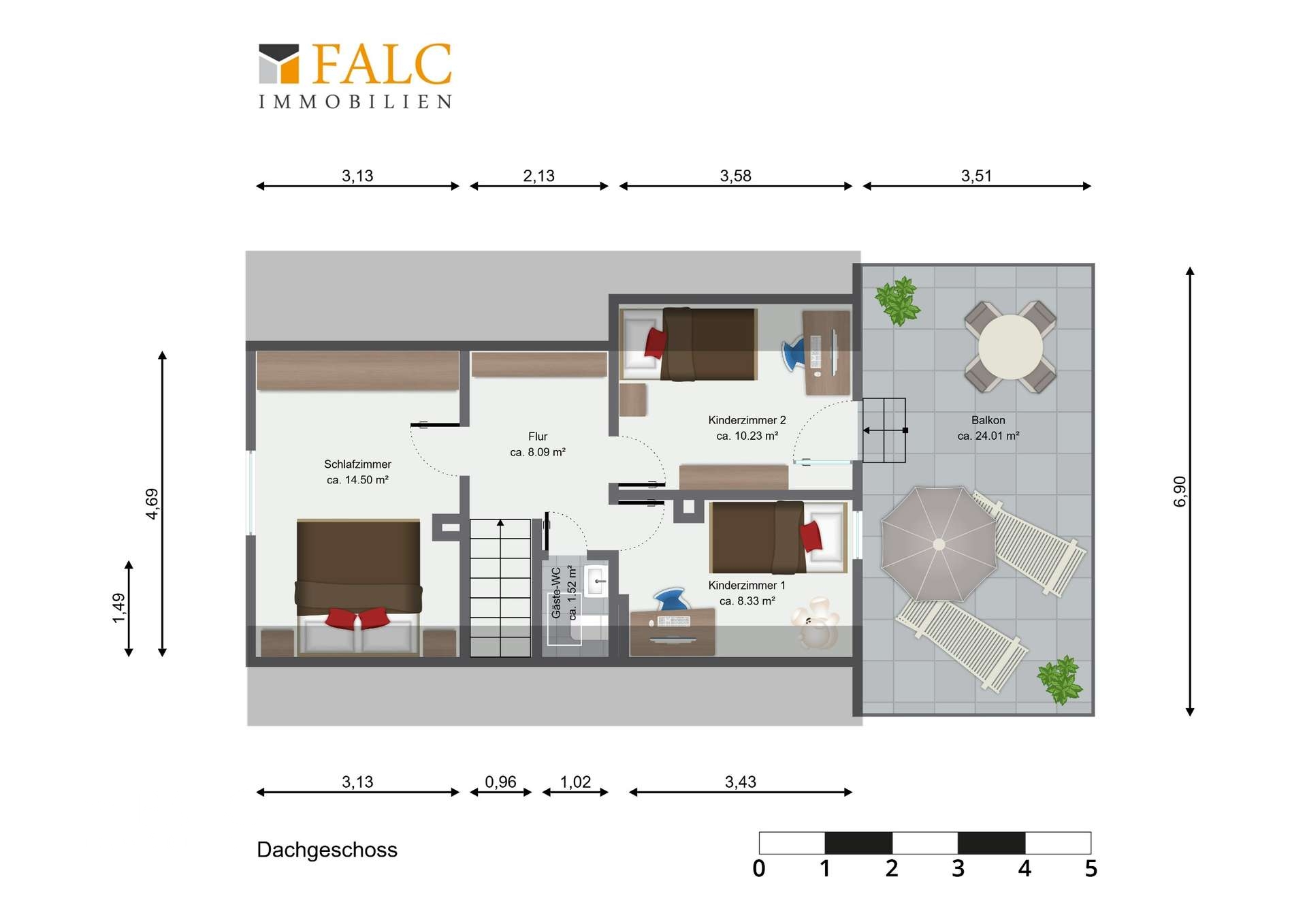 - Großzügiger Balkon mit circa 24 m² Fläche im Obergeschoss