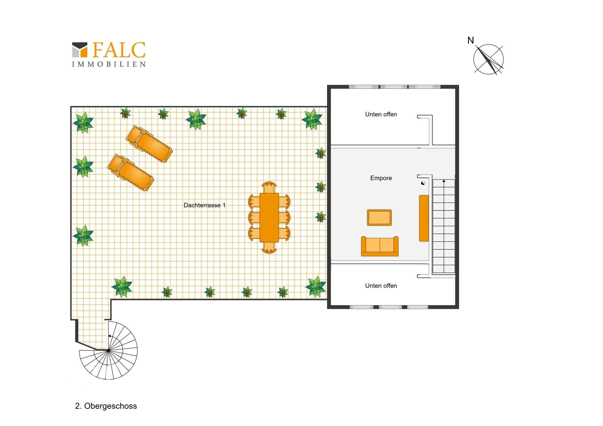 - Außenliegende Wendeltreppe zur Dachterrasse
