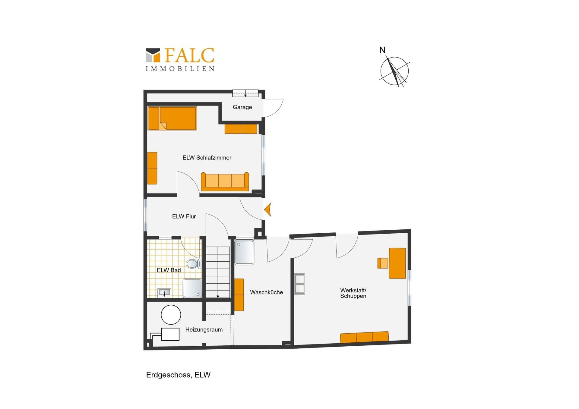 Die Wohnfläche der Einliegerwohnung verteilt sich wie folgt:
