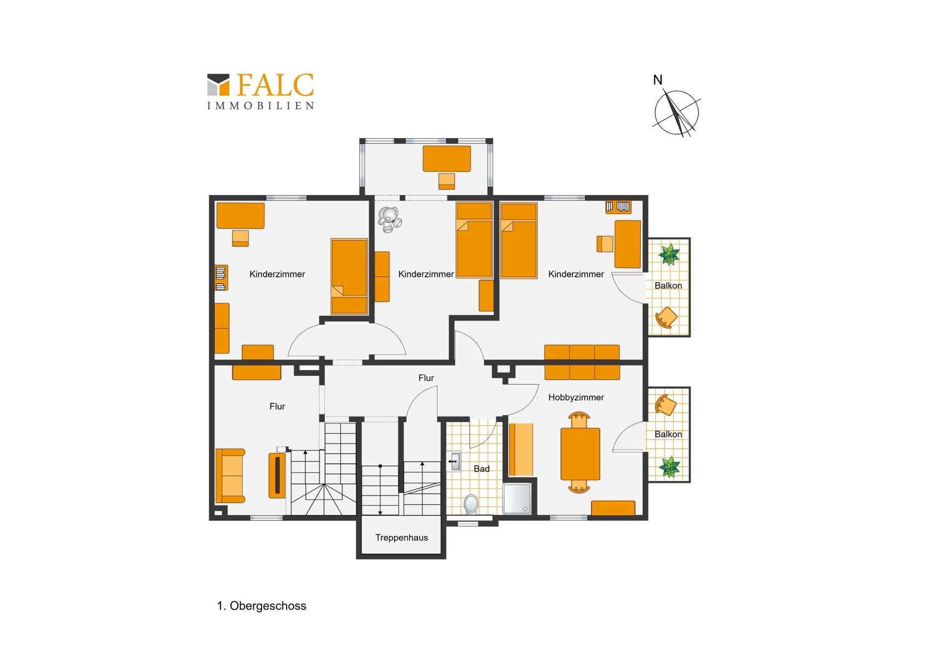 OG: 4 Zimmer, Bad, zwei Balkone