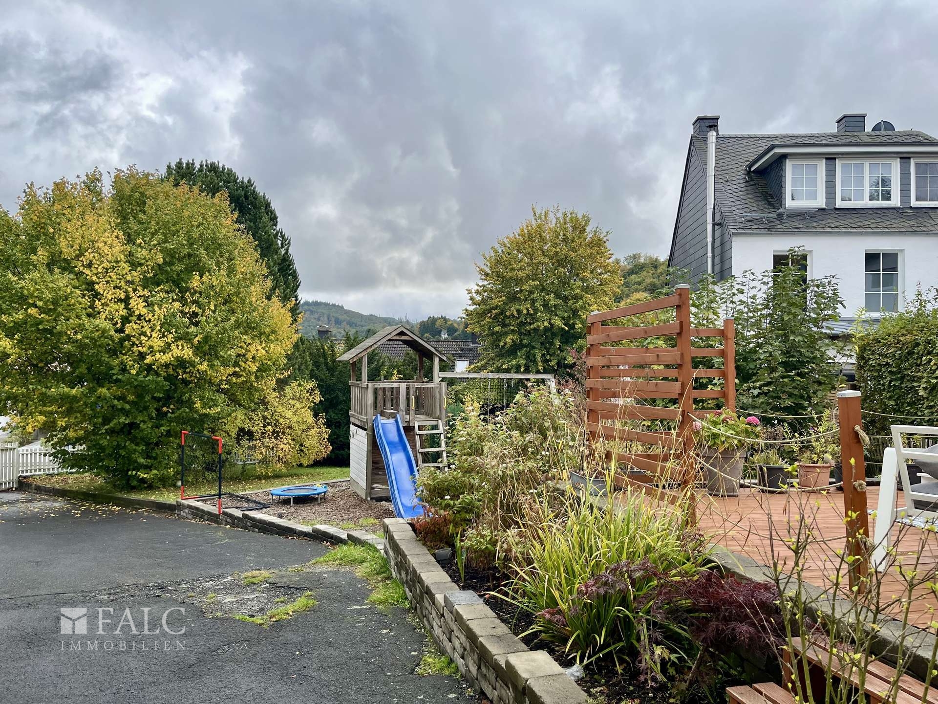 Der traumhafte Blick über den malerischen Taunus unterstreicht das behagliche Wohngefühl und verleiht dem Anwesen eine besondere Atmosphäre. Der liebevoll gestaltete Garten mit Klettergerüst und Holzterrasse lädt zum Spielen, Entspannen und Verweilen ein und bietet reichlich Platz für vielfältige Aktivitäten im Freien.