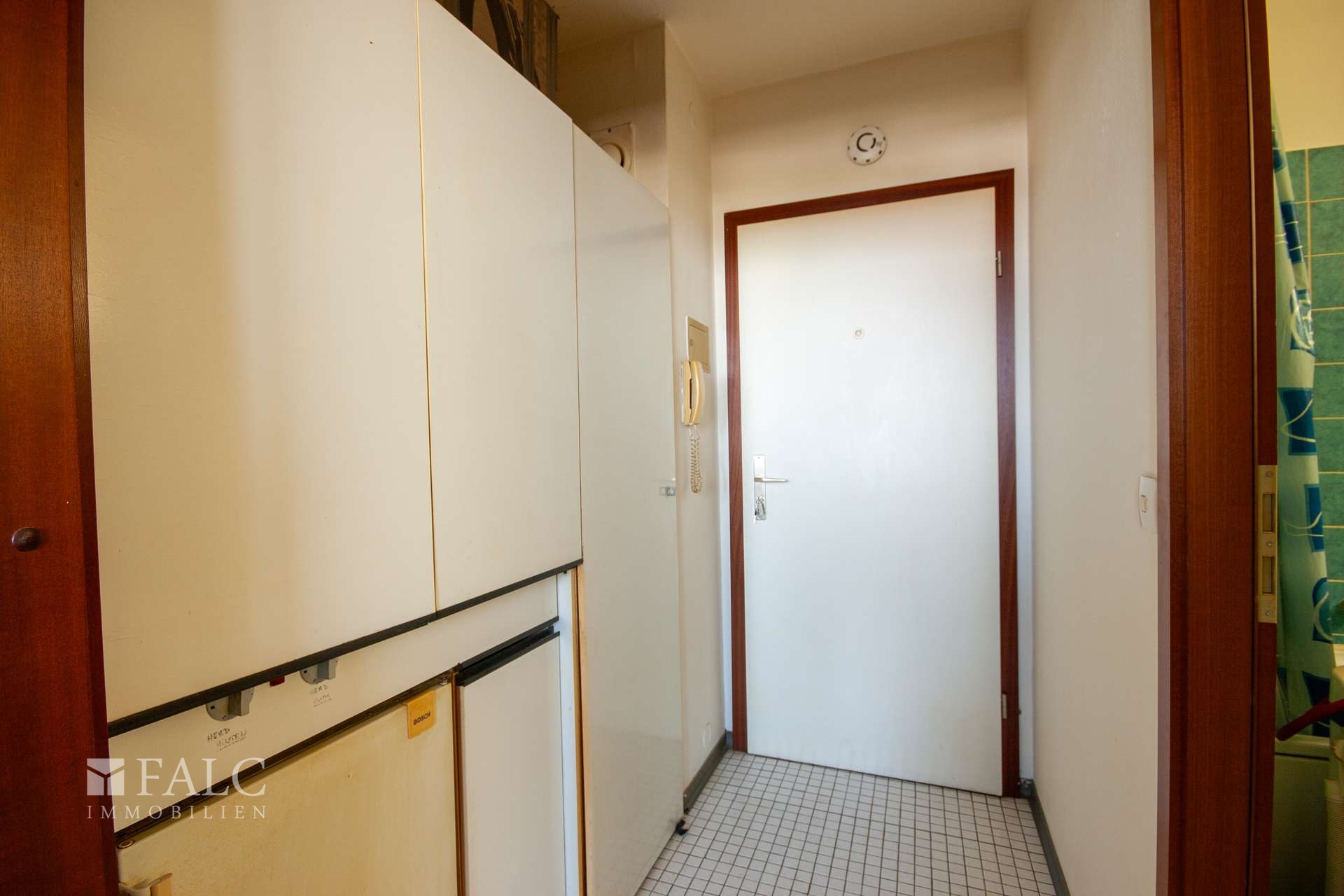 Von dem Eingangsflur mit der integrierten "Junggesellen"-Küche erreichen Sie linker Hand das Badezimmer mit Wanne und WC. Geradeaus betreten Sie den Wohn- und Schlafraum.