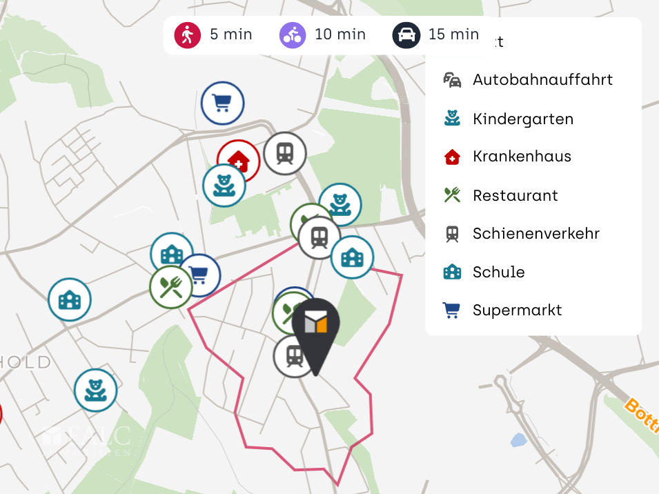 Die Wohnung ist hervorragend an das regionale Rad- und Wanderwegenetz von Grün und Gruga und der Rheinischen Bahn mit seinen Rundkursen durch Essen angebunden. Diese erstrecken sich u.a. von der Essener Uni nach Mülheim sowie zum Grugapark und der Ruhr mit Baldeneysee.