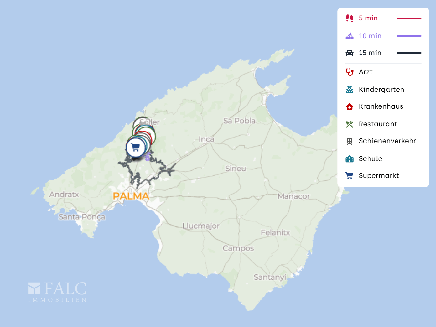 Insgesamt bietet die Lage eine stimmige Mischung aus Nahversorgung, kurzen Wegen und guter Erreichbarkeit, ohne auf das entspannte Umfeld eines mallorquinischen Ortes verzichten zu müssen.