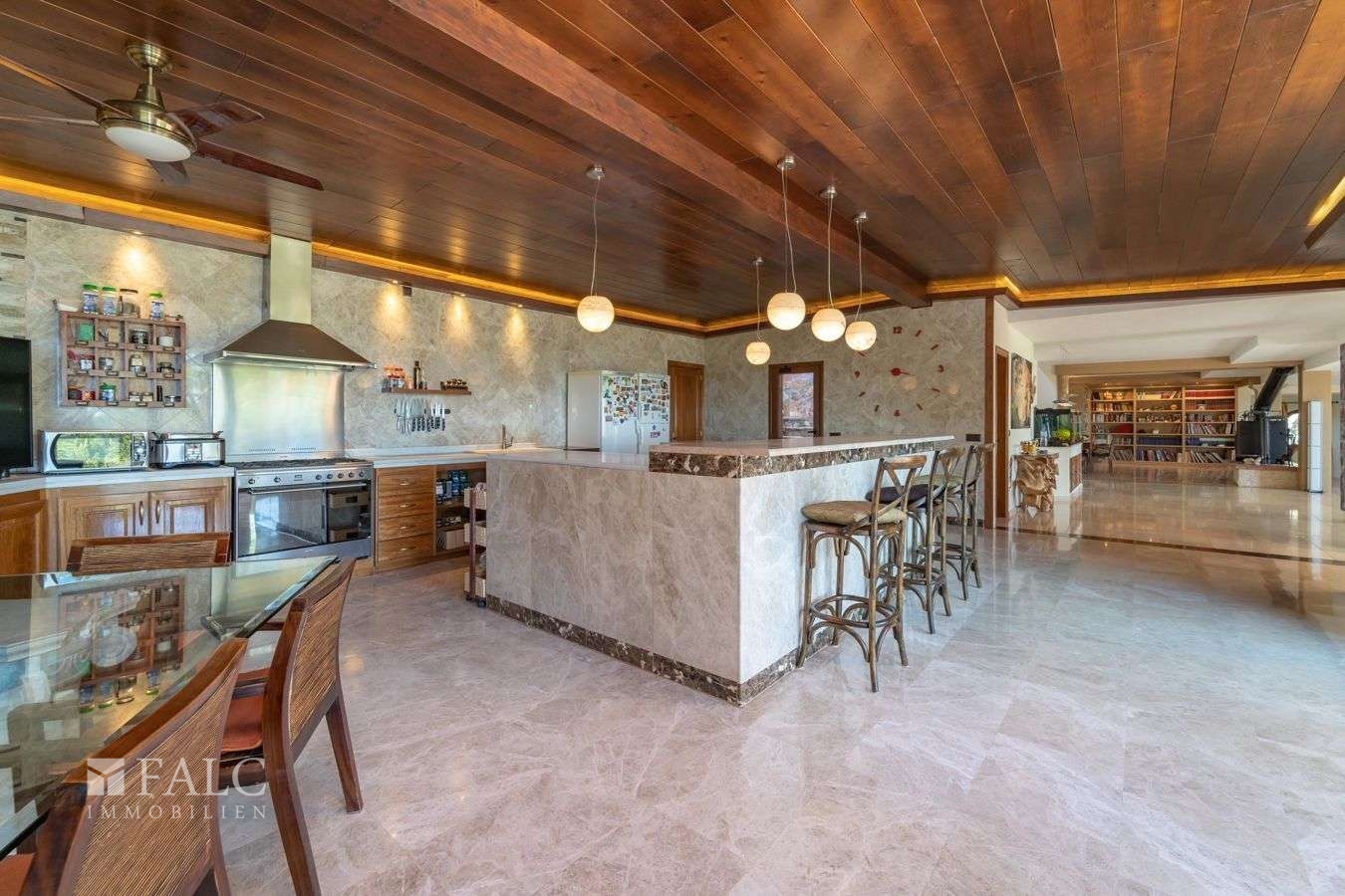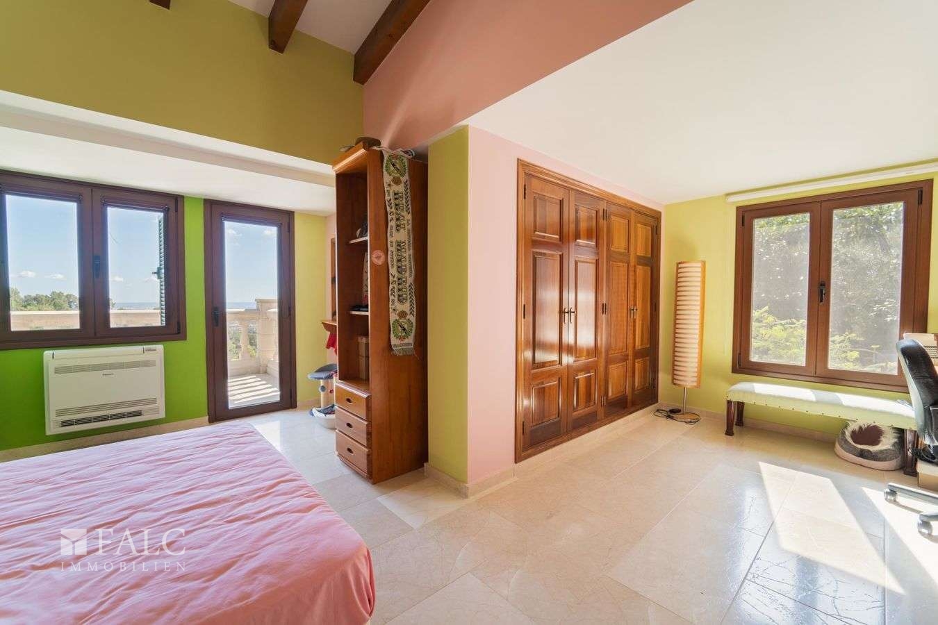 Diese wunderschöne Finca in Establiments mit Blick auf die Serra de Tramuntana und die Bucht von Palma befindet sich auf einem Grundstück von 15.510 m2 in einer herrlichen Landschaft, umgeben von Natur und nur 10 km vom Zentrum von Palma entfernt. Das exklusive Objekt bietet absolute Privatsphäre, wunderschöne mediterrane Gärten mit Obstbäumen und einen herrlichen Pinienwald. Die spektakuläre 2-stöckige Finca mit einer grosszügigen Wohnfläche von ca. 569 m2 ist wie folgt aufgeteilt: Das offene und helle Untergeschoss besteht aus einer Eingangshalle, einem geräumigen Wohnzimmer, einer Bibliothek, einem Esszimmer, einer voll ausgestatteten Küche und einem Gäste-WC. Im Obergeschoss befinden sich das Hauptschlafzimmer mit Bad en suite und Ankleideraum sowie 4 weitere geräumige Schlafzimmer (eines davon mit Bad en suite). Der faszinierende Aussenbereich dieses beeindruckenden Landhauses wird durch eine Wohnung mit eigenem Eingang, mehrere Terrassen zum Geniessen des guten Wetters und einen Salzwasserpool zur Abkühlung hervorgehoben. Extras: Fussbodenheizung in allen Räumen und Nebengebäuden, Klimaanlage, Sommerküche, vom Haus getrennter Hauswirtschaftsraum, 300 Tonnen Speicher und Regenwasserzisterne mit Pumpbrunnen und eine Garage für 2 Autos. Establiments ist ein ruhiges und begehrtes Viertel, nur 10 Minuten von Palma entfernt.