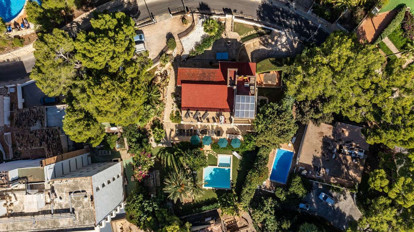 Diese hübsche Villa in Paguera verfügt über Ferienvermietungslizenz für 12 Personen, bietet Meerblick von der Dachterrasse und befindet sich nur wenige Schritte von einem wunderschönen Strand mit türkisfarbenem Wasser entfernt, im beliebten Südwesten der Insel Mallorca. Die attraktive, 2019 renovierte Immobilie hat eine bebaute Fläche von ca. 450 m2 und besteht aus 4 separaten, voll ausgestatteten Apartments, die insgesamt 4 Wohnzimmer, 4 Einbauküchen, 6 schicke Schlafzimmer, 6 Bäder, einen Ankleideraum mit einer Toilette, sowie eine Sauna bieten. Der charmante Aussenbereich mit einem fabelhaften Salzwasserpool und einem schönen Garten mit Grilplatz und Sitzecken lädt dazu ein, die magischen Tage und Nächte auf der wundervollen Insel Mallorca zu geniessen. Zu den Ausstattungsmerkmalen dieser attraktiven Villa in Paguera zählen: Klimaanlage, Infrarotheizung in den Bädern, Kamin, Solaranlage mit Speicherbatterien, Entkalungsanlage, schnelles WLAN, doppelt verglaste Fenster, sowie Fliesenböden. Zur Verfügung stehen mehrere Parkplätze im Freien. Die Immobilie verfügt über jahrelange Stammkunden. Es handelt sich um eine fantastische, ruhige Lage, nur wenige Minuten zu Fuss vom Strand mit kristallklarem Wasser und ca. 5 Autominuten von dem nächsten Golfplatz in Andratx entfernt.