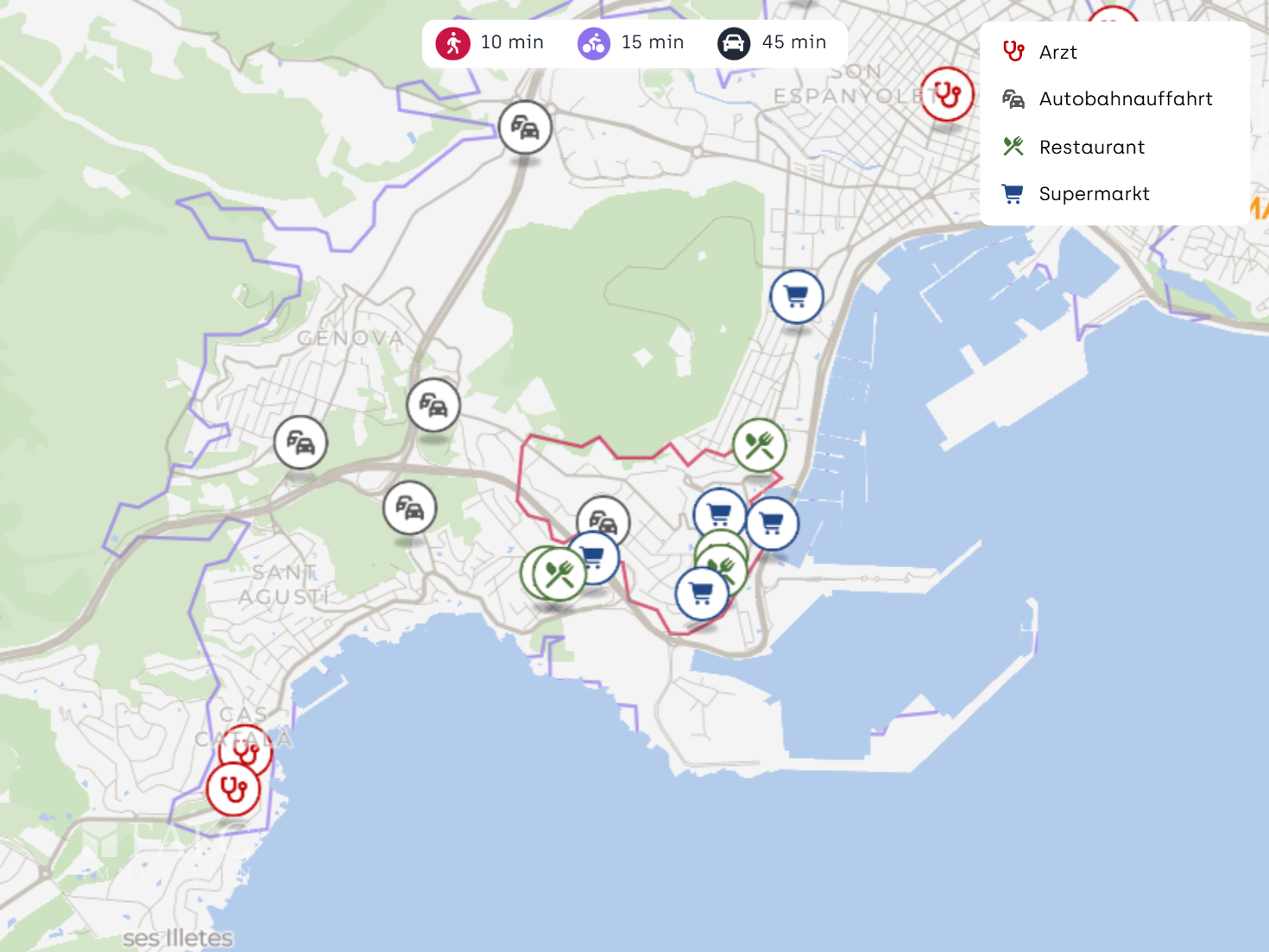 Die Verkehrsanbindung ist ein weiterer Pluspunkt: Mehrere Autobahnauffahrten befinden sich bereits in ca. 300 m bis 1,1 km Entfernung und sorgen für schnelle Wege in Richtung Innenstadt, Küste und überregionale Ziele. Der Flughafen Palma de Mallorca ist je nach Verkehr in etwa 15 km erreichbar und damit auch für Pendler oder Zweitwohnsitznutzer praktisch gelegen.