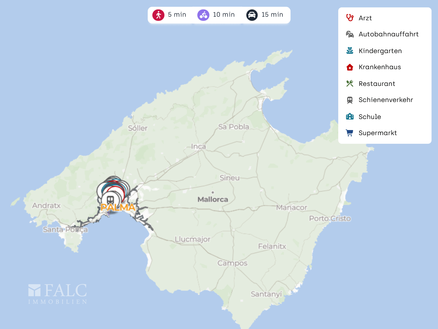 In Summe bietet diese Lage eine ausgewogene Mischung aus Nahversorgung, kulinarischer Vielfalt, Kultur und guter Erreichbarkeit, ideal für alle, die Palma gerne zu Fuß erleben und dennoch schnell unterwegs sein möchten.
