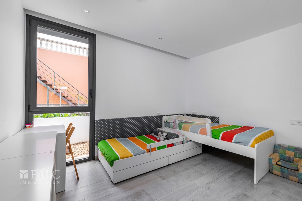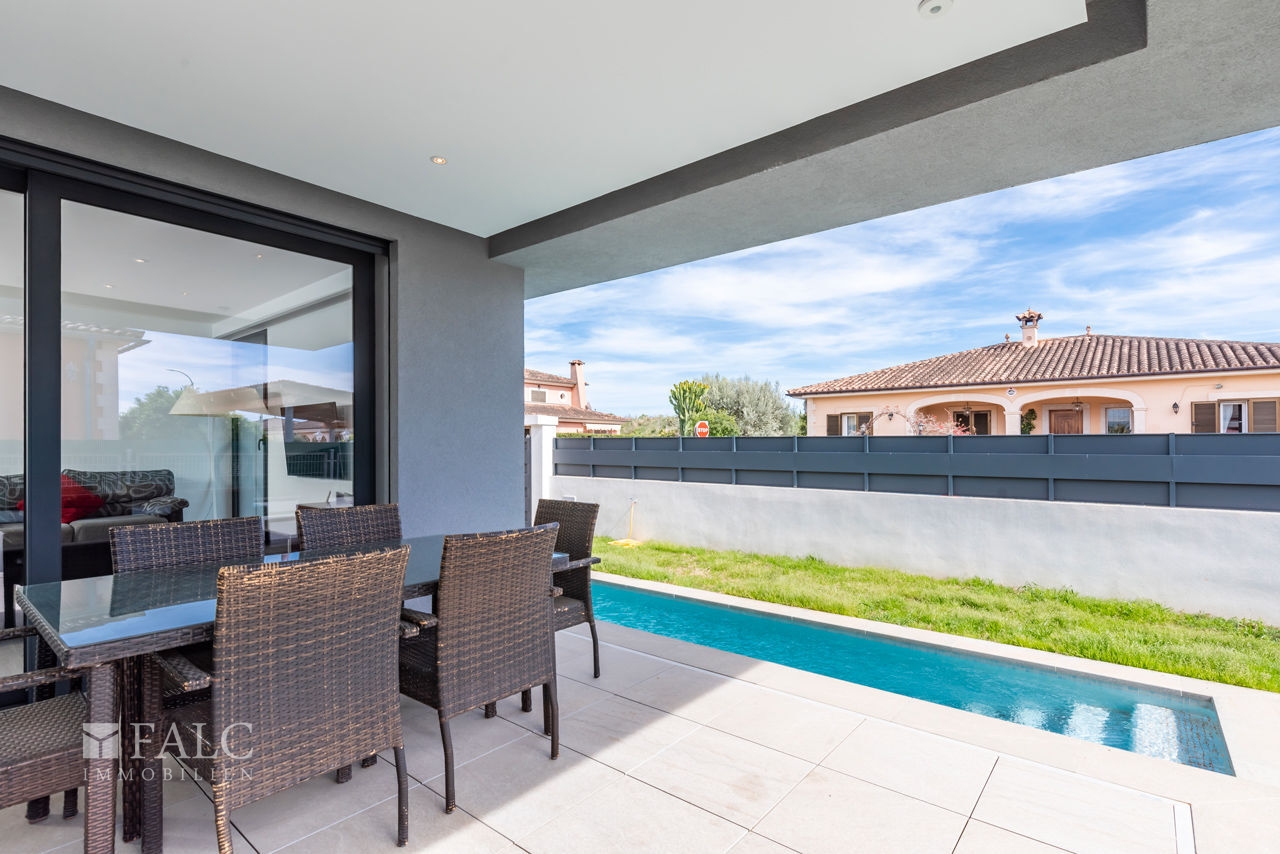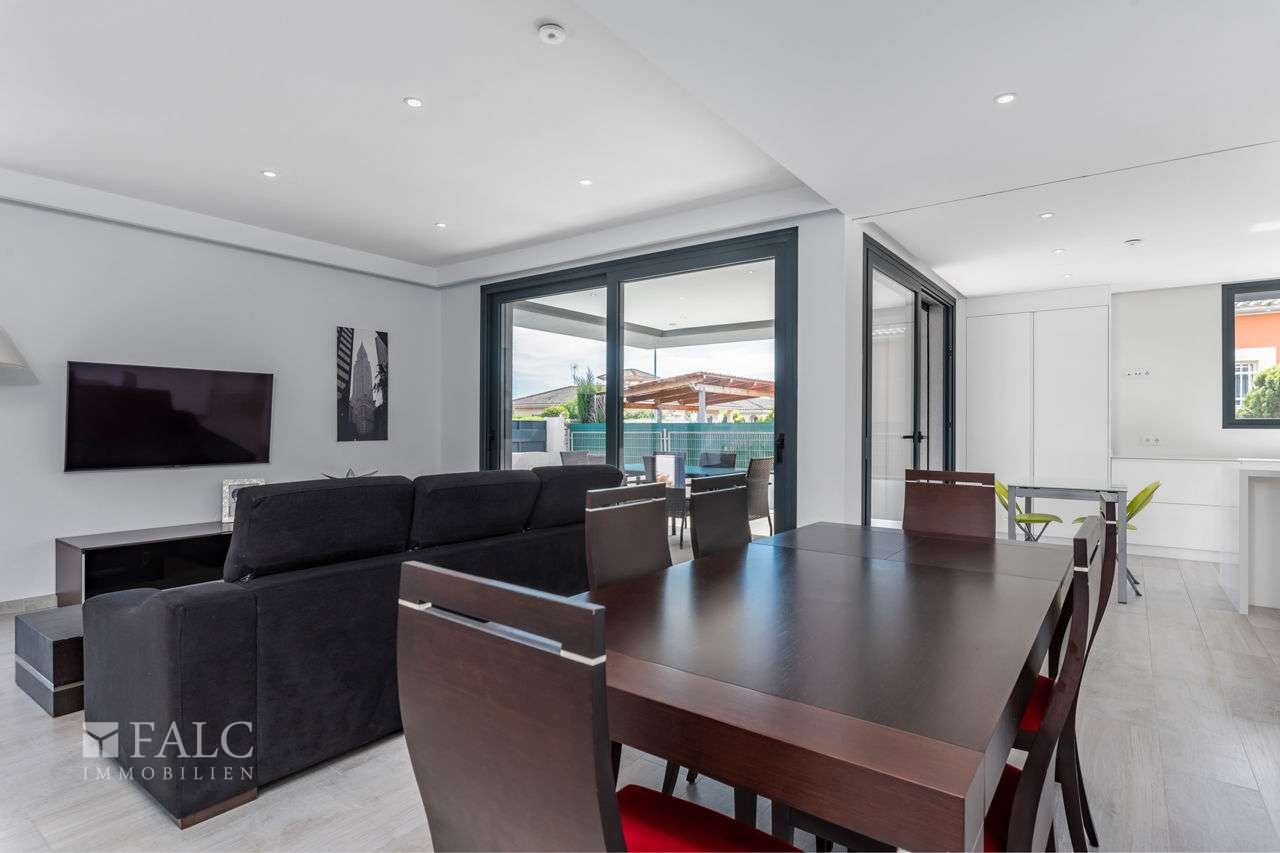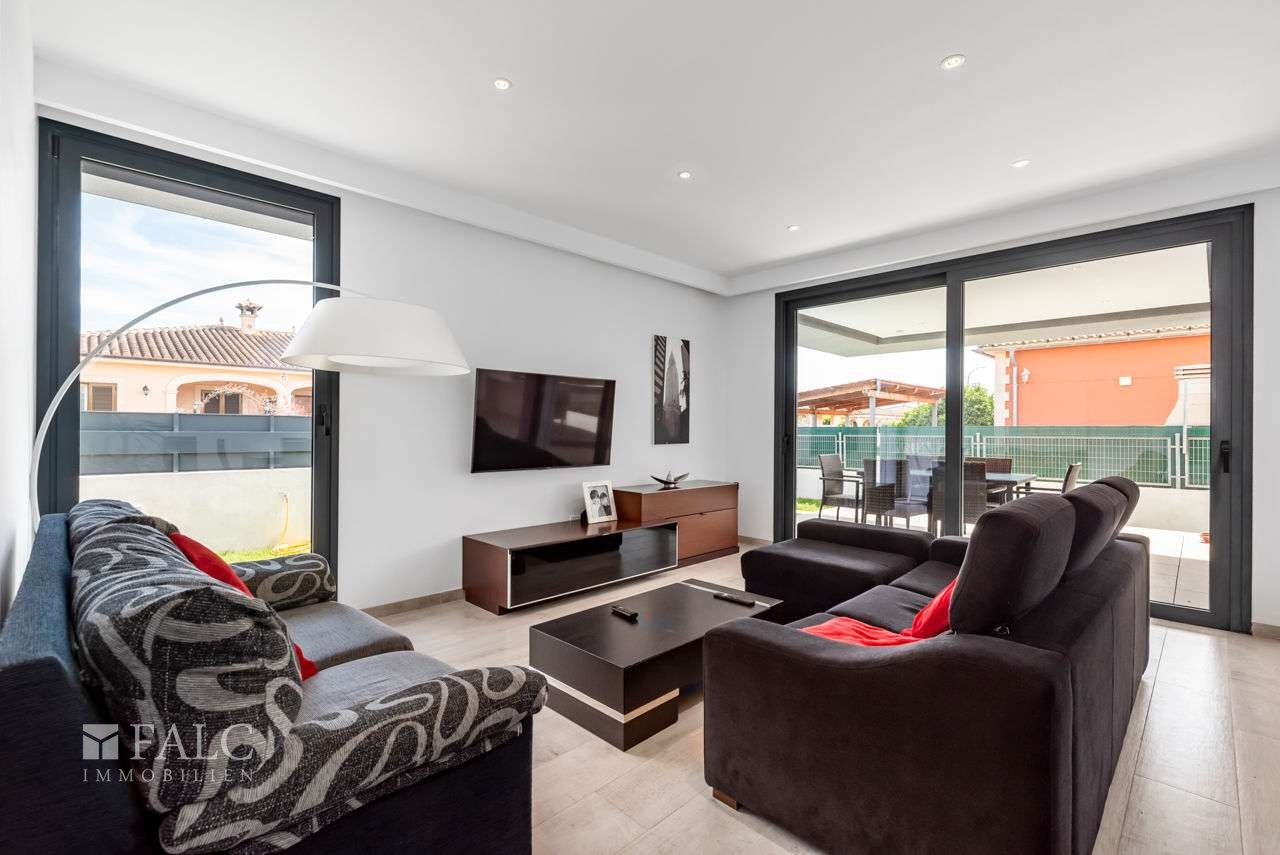Diese fantastische moderne Villa in Marratxi befindet sich in einer ruhigen Familiengegend namens Son Macia-Nova Cabana. Das schöne einstöckige Objekt bietet Südwestausrichtung und einen erfrischenden Salzwasserpool, der von Naturrasen umgeben ist. Die Villa wurde kürzlich renoviert und hat eine bebaute Fläche von ca. 311 m2 verteilt auf ein Erdgeschoss und einen grossen Kellerbereich. Die Hauptebene besteht aus ca. 168 m2 und verfügt über ein prächtiges Wohn-/Esszimmer mit Zugang ins Freie, eine perfekt ins Haus integrierte Küche mit Kochinsel, 3 Schlafzimmer mit Einbauschränken, 2 Bäder und eine Waschküche. Vom Wohnzimmer aus gelangt man auf eine wunderschöne überdachte Terrasse und in den Garten. Der Keller bietet viel Platz und Potenzial für Fitnessraum, Sauna etc. und Parkplatz für mindestens 3 Autos. Extras: Wärmedämmung (SATE) und Luftkammer, Fußbodenheizung und aerothermische Klimaanlage, Hausautomation (Beleuchtung, Klima, Jalousien, Alarm mit Detektoren und Aufnahmekameras), hervorragende Oberflächen und vieles mehr. Diese moderne Villa in Marratxi liegt 5 Minuten von Palma und 10 Minuten vom Flughafen entfernt. Es ist eine sehr ruhige Gegend und in der Nähe von Palma, mit allen Dienstleistungen in der Nähe: Supermarkt, Apotheke, Cafeterias, Schule und Friseur.