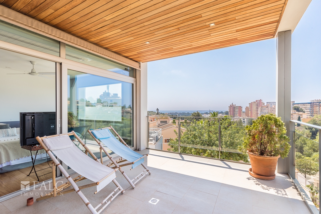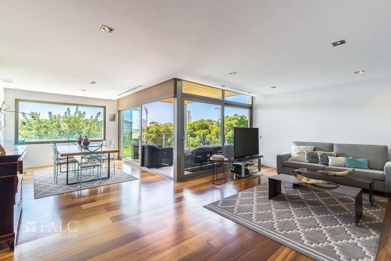 Die nächste Bushaltestelle Francesc Vidal i Sureda, 56 liegt in ca. 200 m, La Bonanova in ca. 250 m. Damit sind Sie flexibel Richtung Innenstadt und Küstenabschnitte unterwegs. Der Hafenbereich mit den Estació Marítima Terminals ist in ca. 1,4 bis 1,9 km erreichbar. Mit dem Auto gelangen Sie zügig zur Ma-1 sowie zur Ma-20 als wichtige Stadtumfahrung. Der Flughafen Palma de Mallorca ist je nach Verkehr in ca. 20 bis 30 Minuten erreichbar.