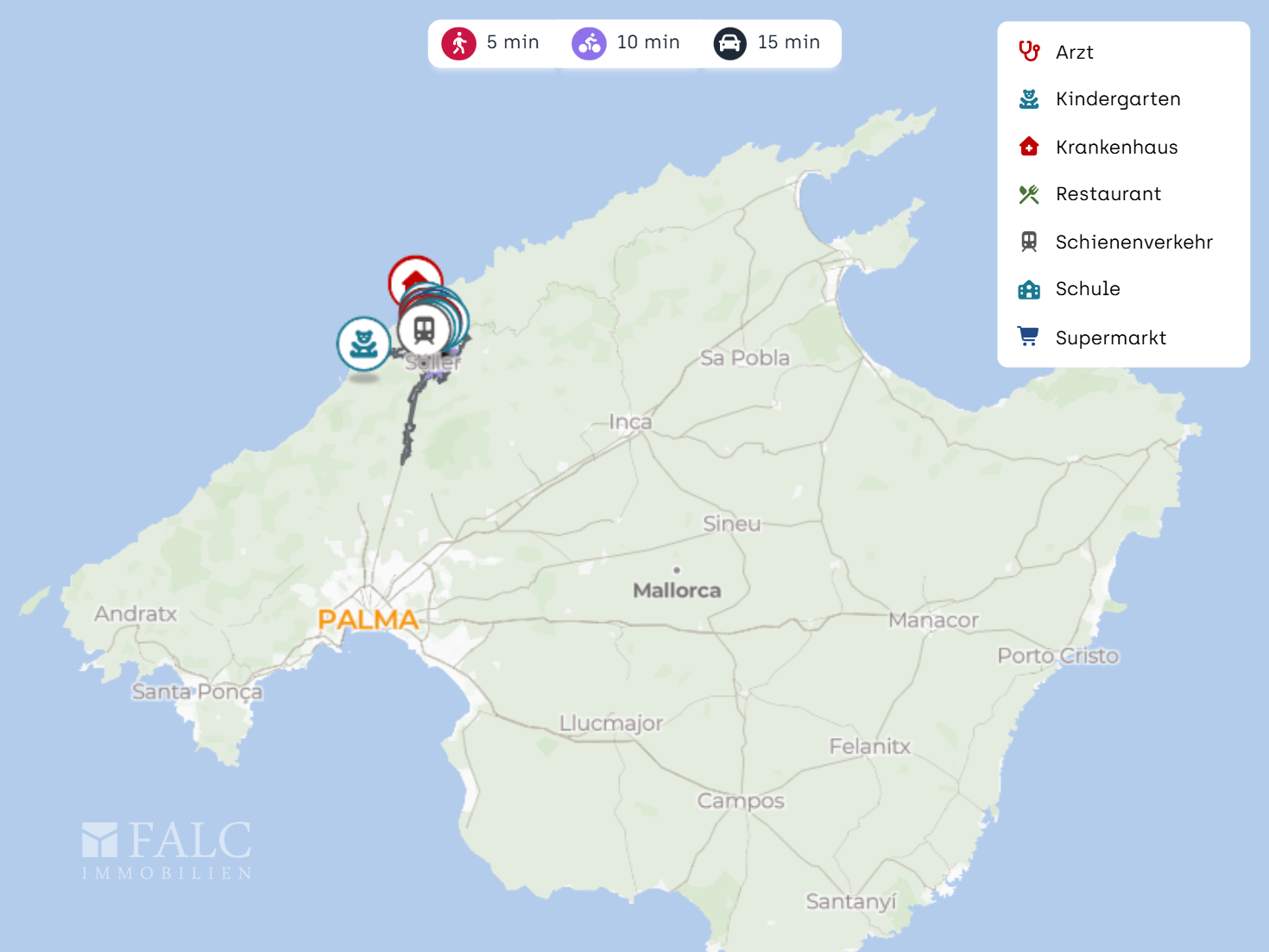 In Summe überzeugt die Lage durch ihre zentrale, fußläufige Infrastruktur, die sehr gute Versorgung im Alltag und die typische Sóller Mischung aus Kultur, Gastronomie und Nähe zur Natur.