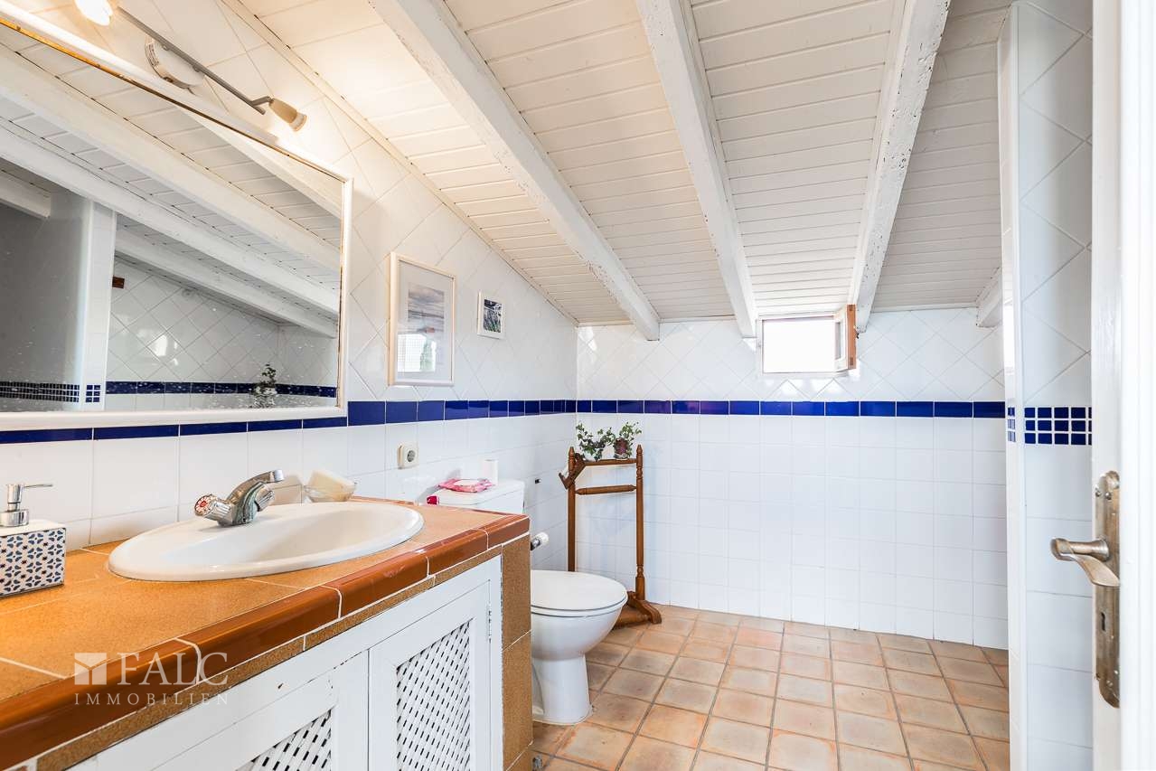 Dieses renovierungsbedürftige Objekt in Santa Maria del Cami befindet sich auf einem ca. 19.273 m2 grossen, umzäunten Grundstück und besteht aus 2 Fincas und einem separaten, renovierungsbedürftigen Gästehaus. Die Fincas sind getrennt, so dass beide völlig privat und individuell sind. Die Einfahrt zum Grundstück erfolgt durch ein automatisches Tor mit Sprechanlage und visueller Kamera. Es gibt einen Parkplatz für 5 Autos und Grünflächen. Die 3 Gebäude befinden sich in einer ruhigen Gegend, nur wenige Kilometer vom Dorf entfernt, mit sicheren Zufahrtswegen, Terrassen, Veranden, Swimmingpool mit überdachtem Grillplatz, Garagen, Büro, Waschküche, 3 Ställen, eigenem Reitplatz und einem Nebengebäude. Die schöne Hauptfinca verfügt über 2 grosse Wohnzimmer, Büro, eine geräumige Küche mit Essbereich, 5 Schlafzimmer, Ankleidezimmer und 4 Bäder. Extras: Insgesamt 11 Schlafzimmer verteilt auf alle Gebäude, Öl-Zentralheizung und Klimaanlage. Santa Maria del Camí ist ein traditionelles Dorf mit authentischen Cafés und Restaurants im Zentrum von Mallorca.