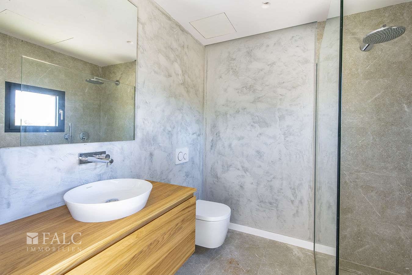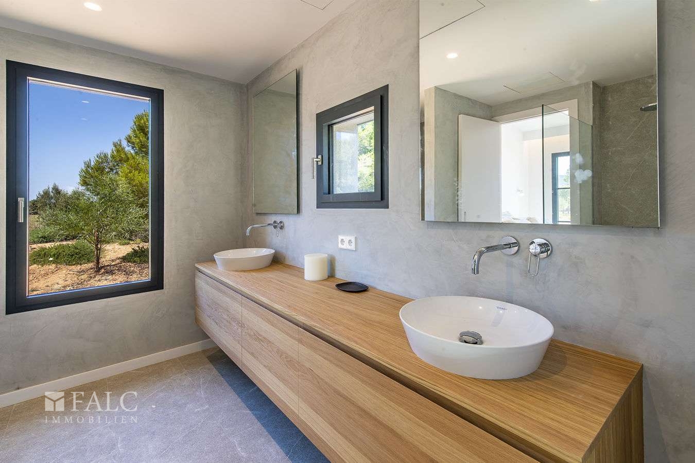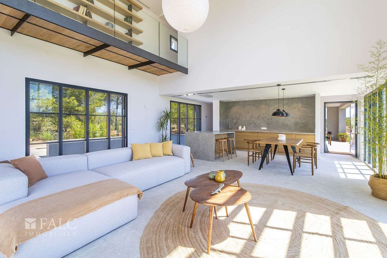 Diese elegante Neubau-Villa in Santa Maria mit Pool spiegelt einen einzigartigen Stil wider. Es wurden bei ihrem Bau nur hochwertige Materialien verwendet, die Naturelemente wie Stein, Holz und Metall miteinander verbinden. Diese Immobilie zeichnet sich durch ihre grossen Fenster aus, die viel Licht hereinlassen.