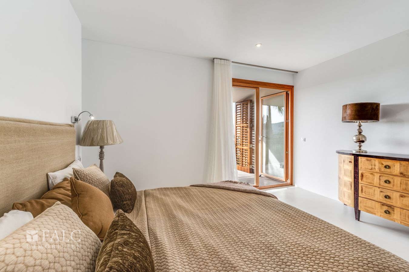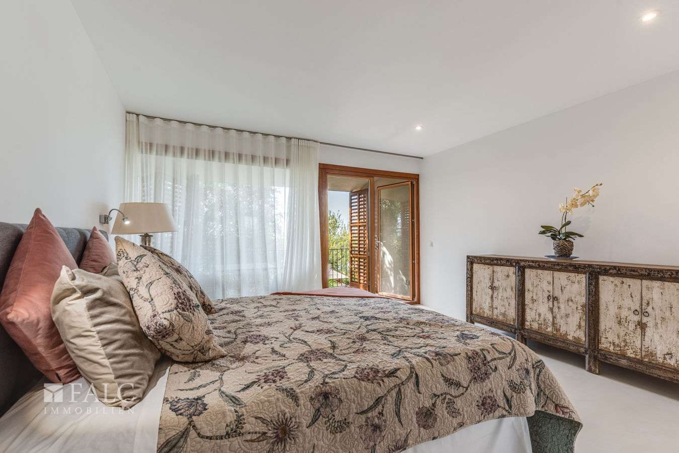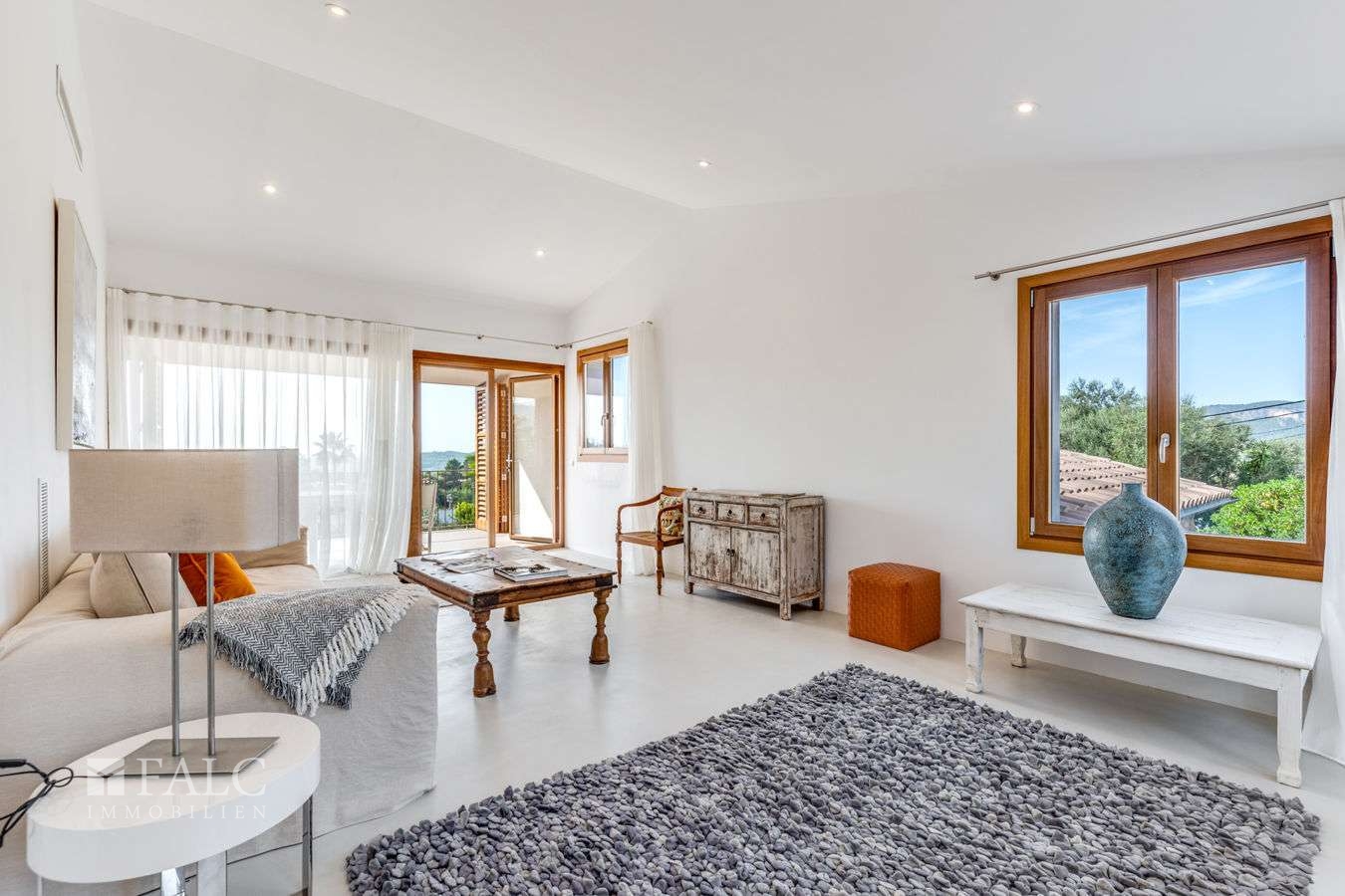 Die Villa verfügt über eine bebaute Fläche von ca. 553 m2, die sich auf 2 Etagen aufteilt wie folgt: ein lichtdurchflutetes Wohnzimmer mit einem spektakulären Kamin und Zugang auf die Terrasse und zum Pool, eine grosse und vollausgestattete Küche im modernen Landhausstil mit Essbereich und Speisekammer, 6 Doppelschlafzimmer mit Bädern en suite und ein weiterer Wohnbereich. Alle Schlafzimmer verfügen über eine private Terrasse mit einer herrlichen Aussicht und teilweise direkten Zugang zum Pool. Ausgestattet ist das Haus mit: Klimaanlage, Fussbodenheizung, Kamin, doppelt verglaste Fenster mit hochwertigen Fensterläden, ein automatisches Bewässerungssystem, ein Hauswirtschaftsraum und ein Abstellraum. Der schöne Aussenbereich mit einem grossen Pool, Lounge Zone und BBQ-Bereich laden zum Verweilen ein. Eine Garage bietet Platz für 2 Fahrzeuge und weitere Parkmöglichkeiten befinden sich auf der privaten Einfahrt. Es ist eine schöne Lage, nur 10 Gehminuten vom Dorf entfernt, mit allen Annehmlichkeiten wie Restaurants und Geschäften. Die bezaubernden Sandstrände und Badebuchten erreicht man in ca. 15 Autominuten.