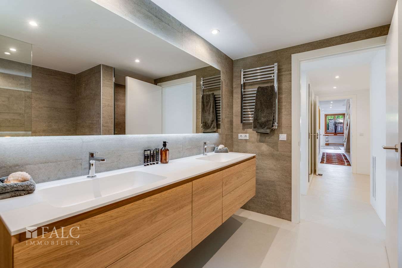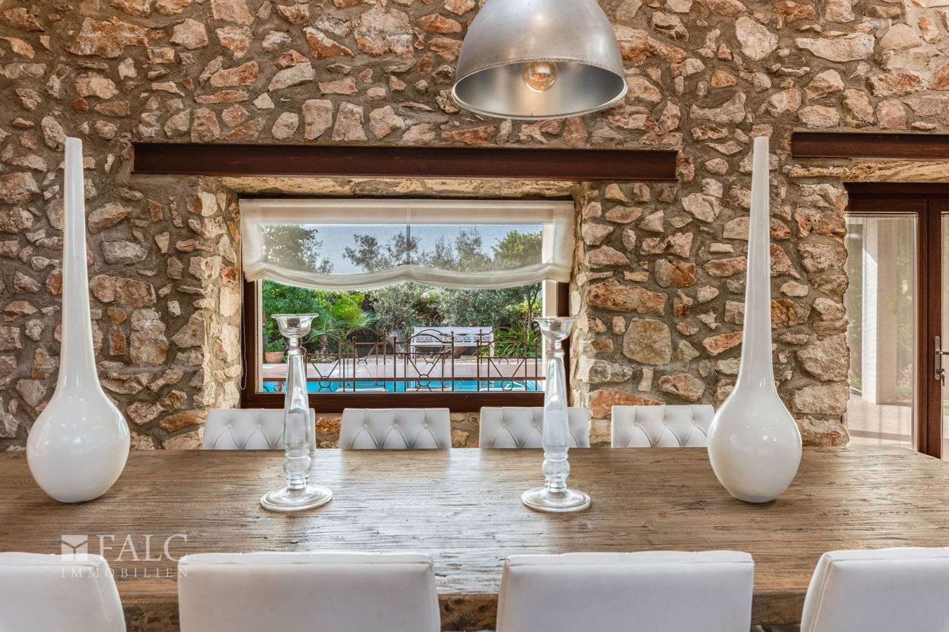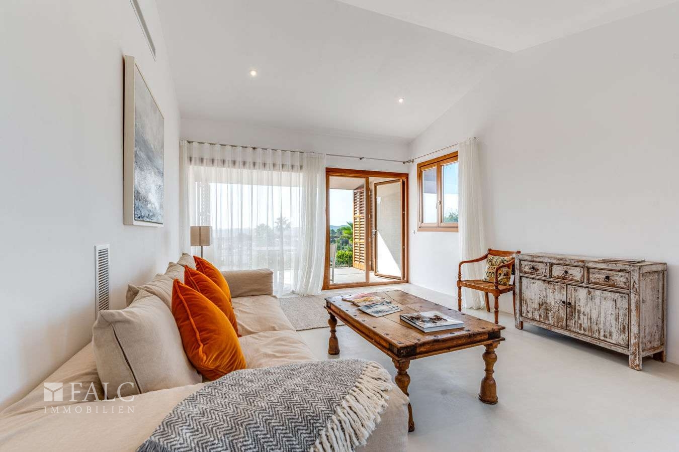 Die Villa verfügt über eine bebaute Fläche von ca. 553 m2, die sich auf 2 Etagen aufteilt wie folgt: ein lichtdurchflutetes Wohnzimmer mit einem spektakulären Kamin und Zugang auf die Terrasse und zum Pool, eine grosse und vollausgestattete Küche im modernen Landhausstil mit Essbereich und Speisekammer, 6 Doppelschlafzimmer mit Bädern en suite und ein weiterer Wohnbereich. Alle Schlafzimmer verfügen über eine private Terrasse mit einer herrlichen Aussicht und teilweise direkten Zugang zum Pool. Ausgestattet ist das Haus mit: Klimaanlage, Fussbodenheizung, Kamin, doppelt verglaste Fenster mit hochwertigen Fensterläden, ein automatisches Bewässerungssystem, ein Hauswirtschaftsraum und ein Abstellraum. Der schöne Aussenbereich mit einem grossen Pool, Lounge Zone und BBQ-Bereich laden zum Verweilen ein. Eine Garage bietet Platz für 2 Fahrzeuge und weitere Parkmöglichkeiten befinden sich auf der privaten Einfahrt. Es ist eine schöne Lage, nur 10 Gehminuten vom Dorf entfernt, mit allen Annehmlichkeiten wie Restaurants und Geschäften. Die bezaubernden Sandstrände und Badebuchten erreicht man in ca. 15 Autominuten.