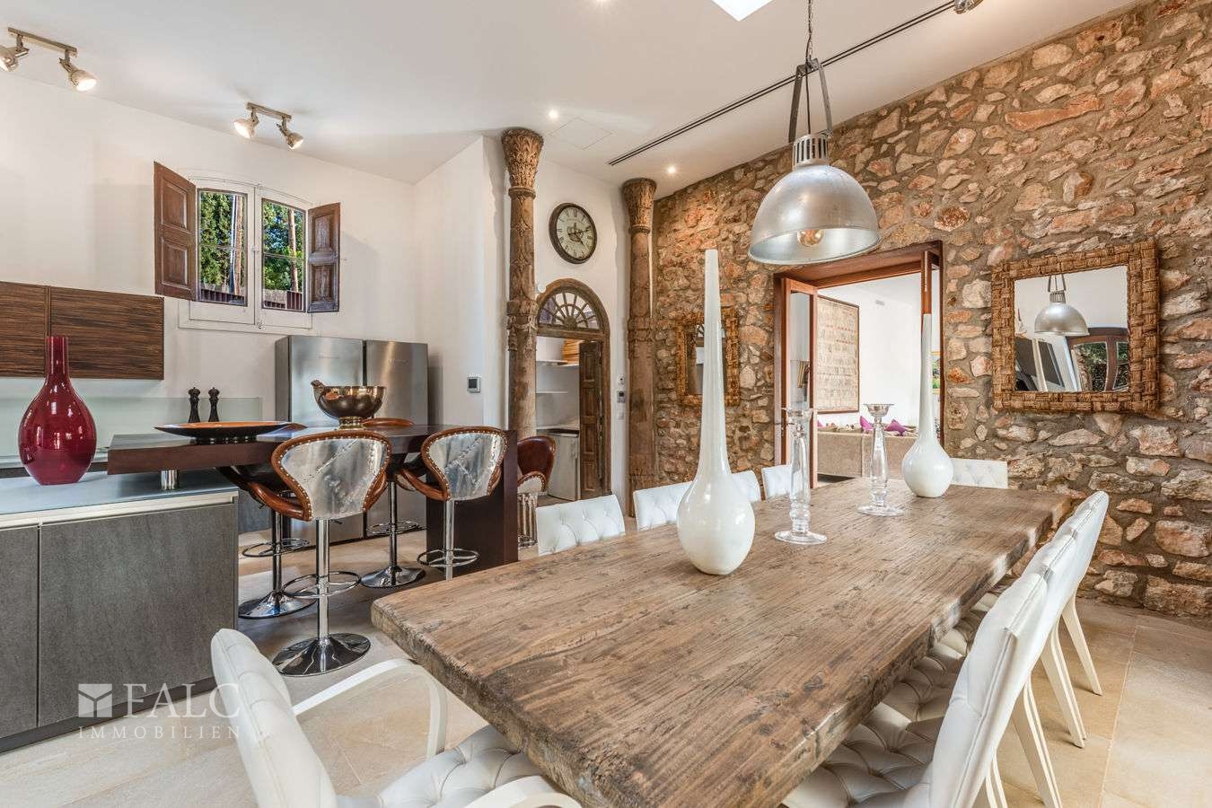 Diese beeindruckende Villa in Calvia im modernen kolonial Stil bietet einen wunderschönen Blick auf die umliegenden Berge und befindet sich in einer ruhigen Wohngegend. Das luxuriöse Anwesen zeichnet sich durch die aussergewöhnliche Inneneinrichtung und die grosszügige Raumaufteilung aus.